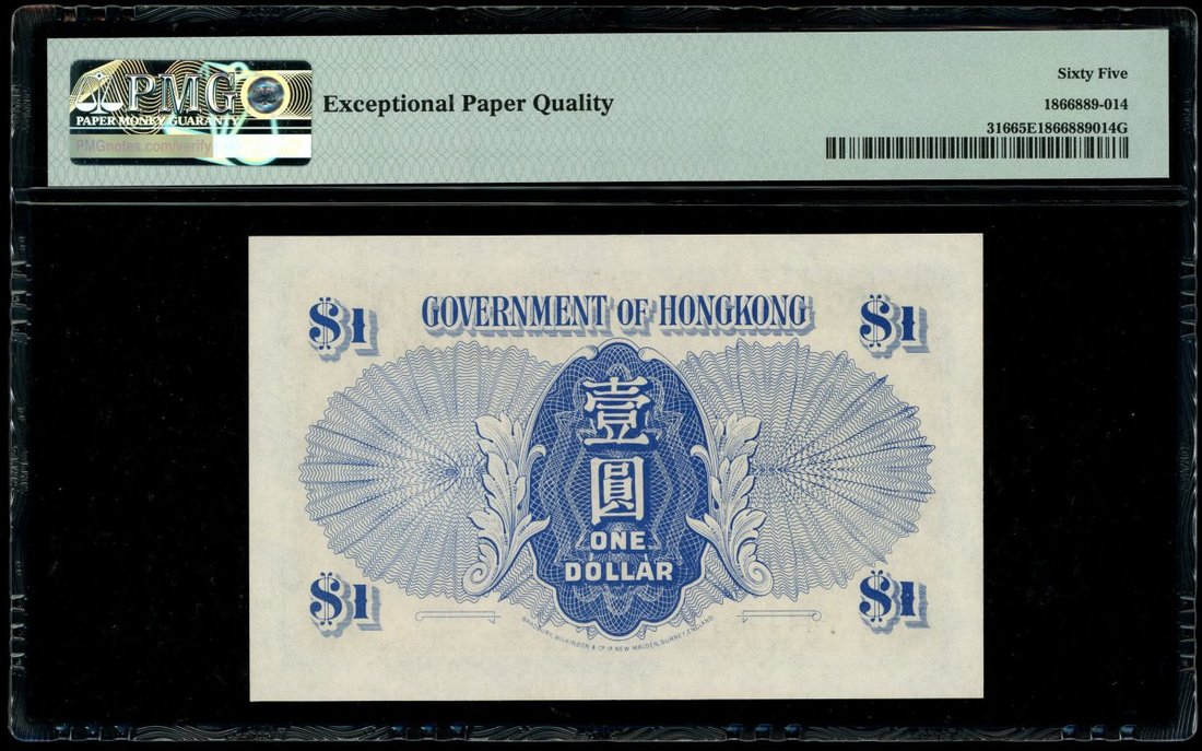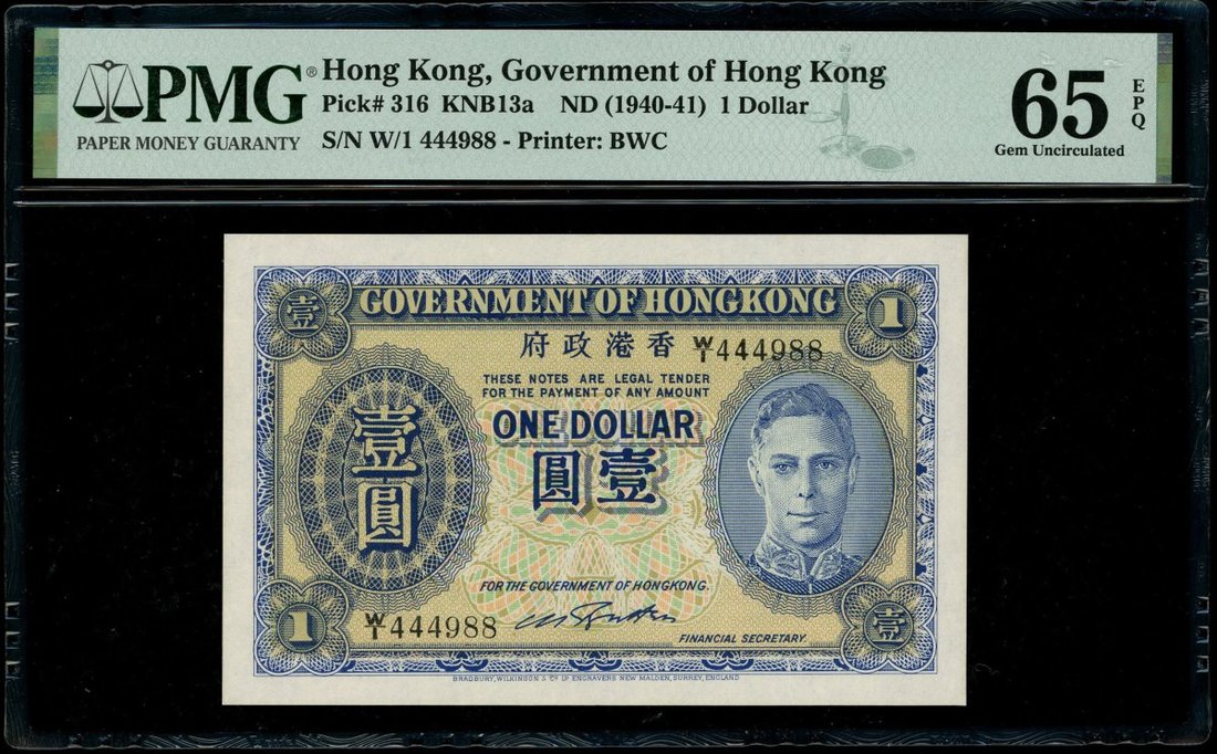 1940年香港政府1元,編號W/1 444988,PMG 65EPQ