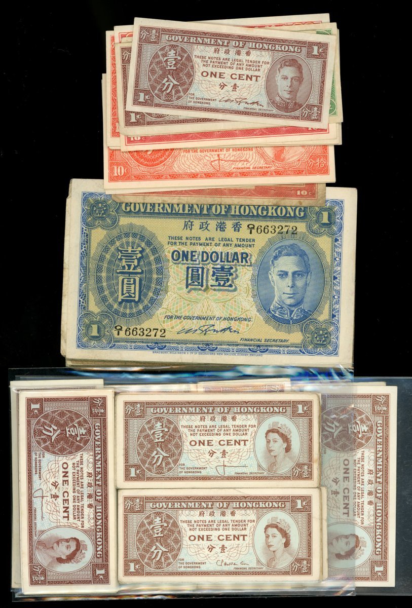 Government of Hong Kong, a large group of 135 notes, consists of about 65x 1 cent, 1x 5 cents, 15x 10 cents, about 54x $1, various types,