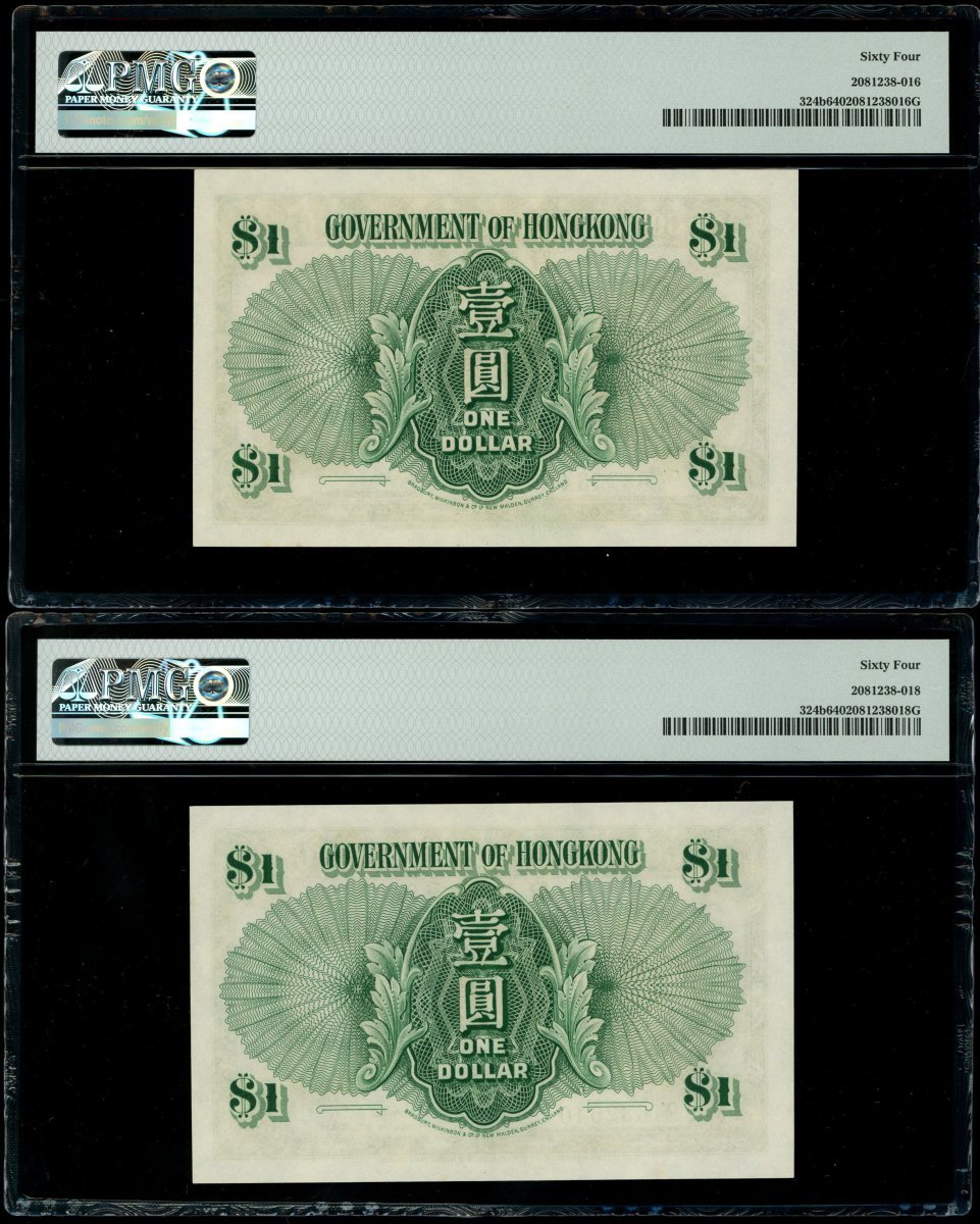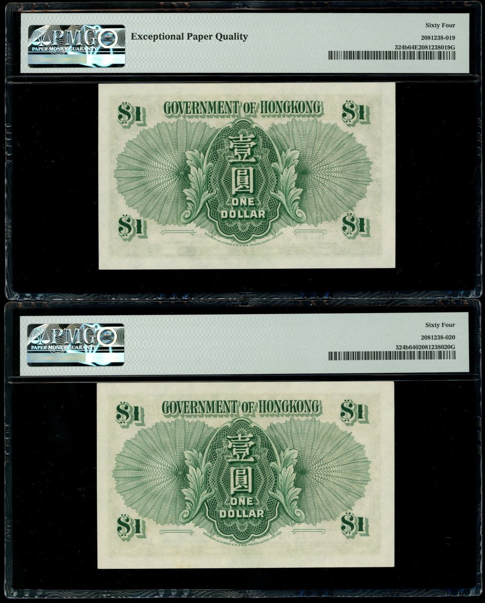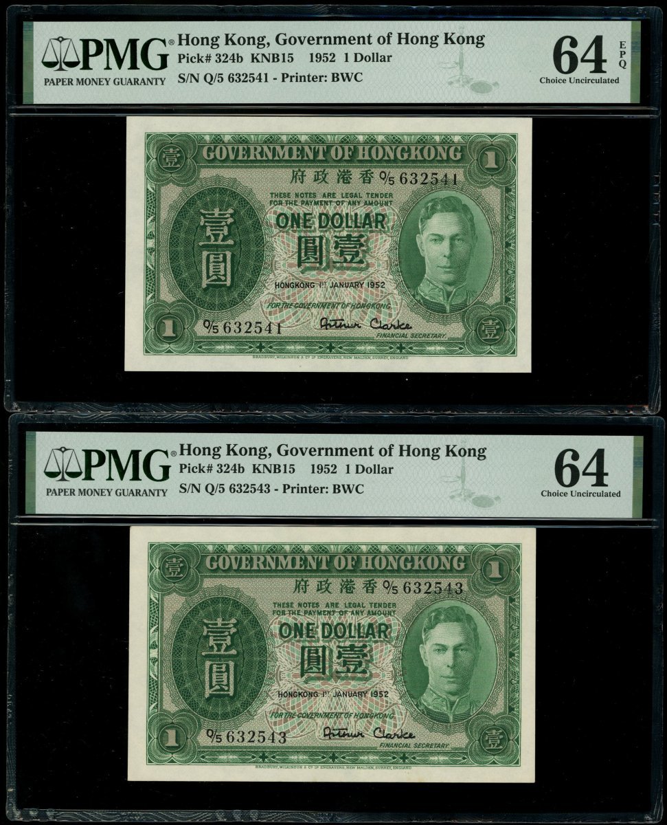 Government of Hong Kong, a group of 5x $1, 1.1.1952, serial numbers Q/5 632534, 540-541, 543-544, (Pick 324b), Q/5 632541 graded PMG 64EPQ and the rest PMG 64 (5).