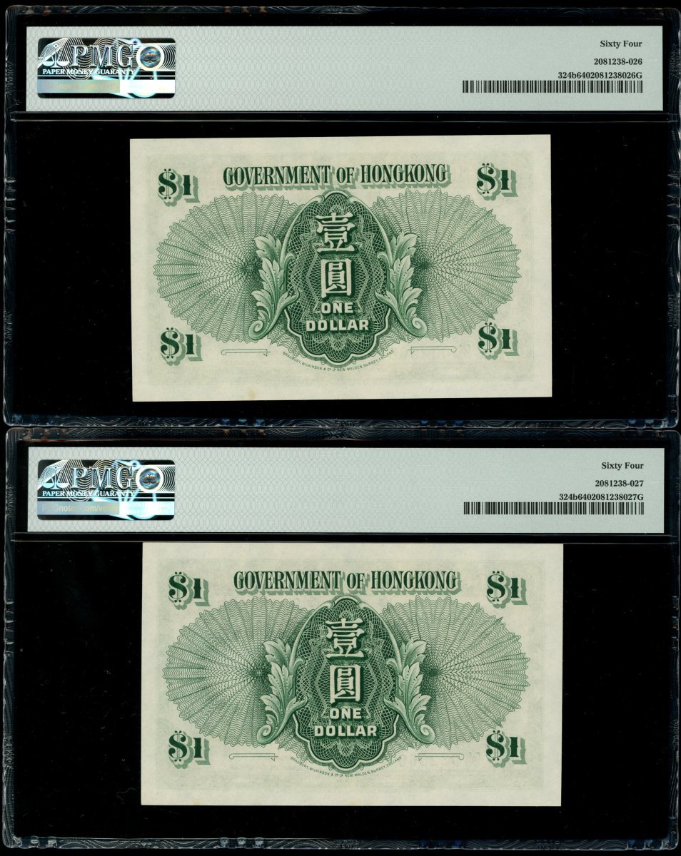 1952年香港政府1元一組5枚,編號Q/5 632549,566,567-569及580,均評PMG 64