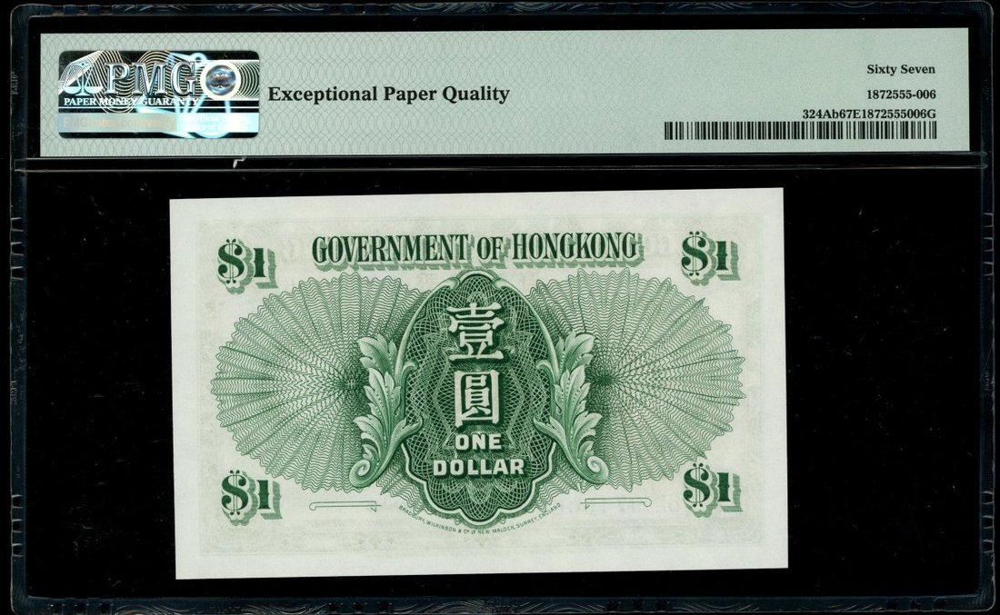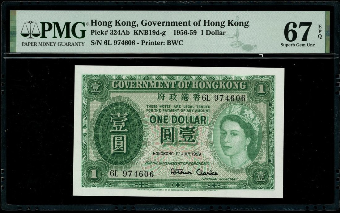 Government of Hong Kong, $1, 1.7.1959, serial number 6L 974606, (Pick 324Ab), PMG 67EPQ Superb Gem Uncirculated