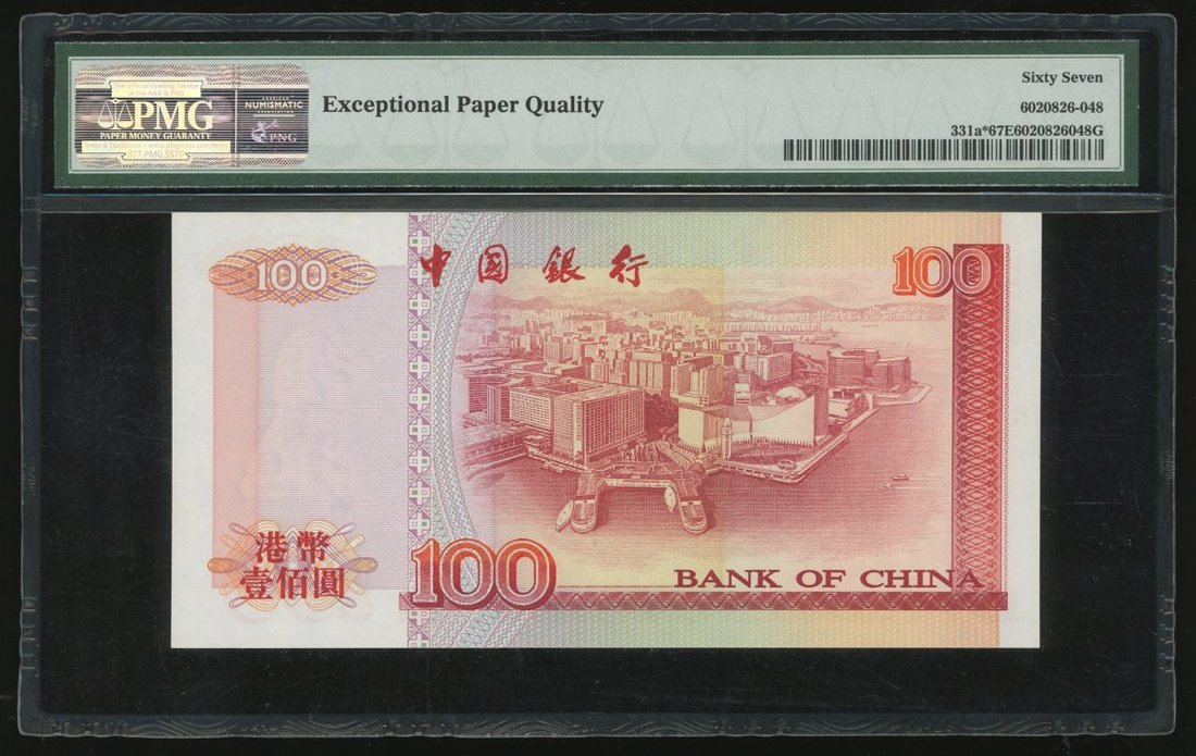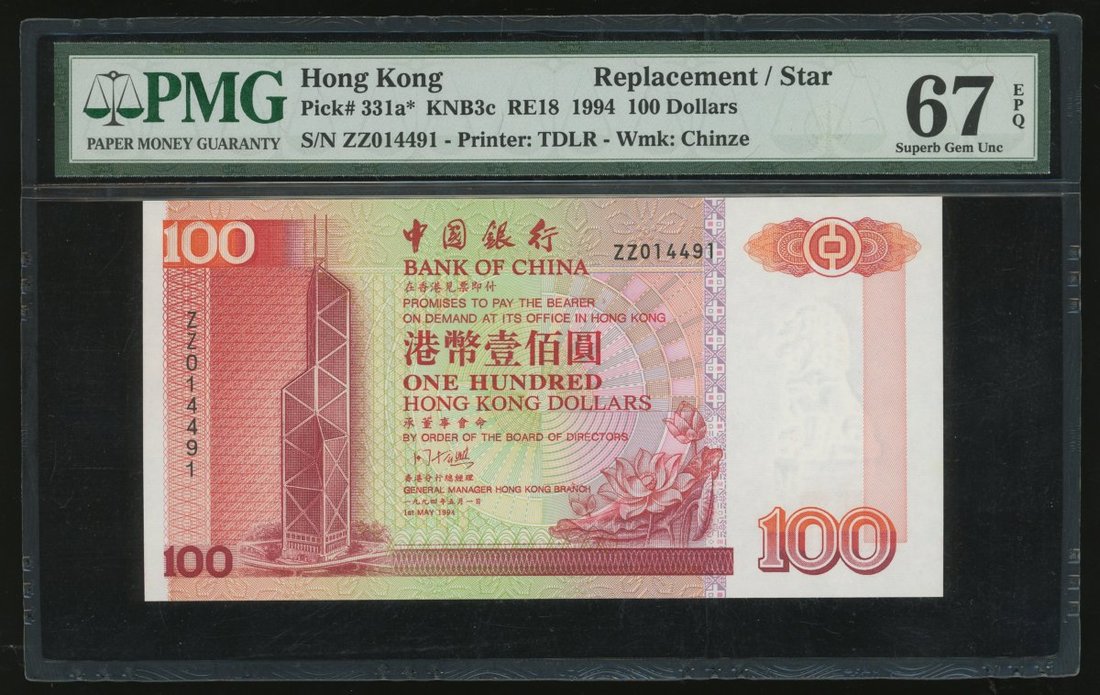 Bank of China, $100, 1.5.1994, replacement serial number ZZ014491, (Pick 331a*), PMG 67EPQ Superb Gem Uncirculated