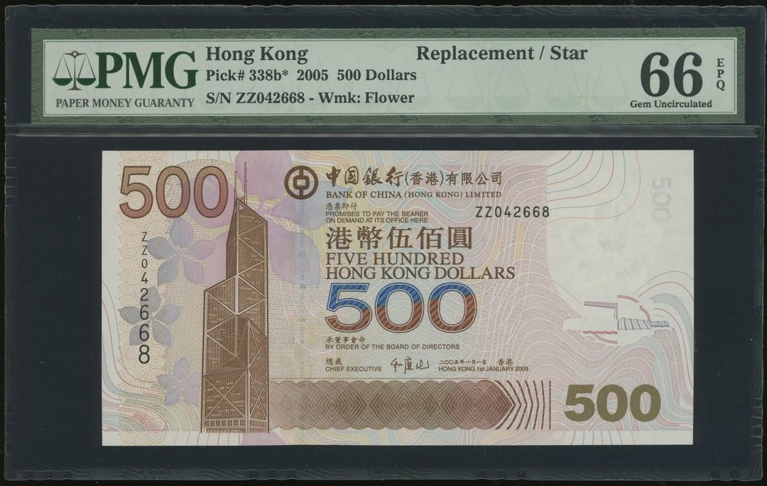 Bank of China, $500, 1.1.2005, replacement serial number ZZ042668, (Pick 338b*), PMG 66EPQ Gem Uncirculated