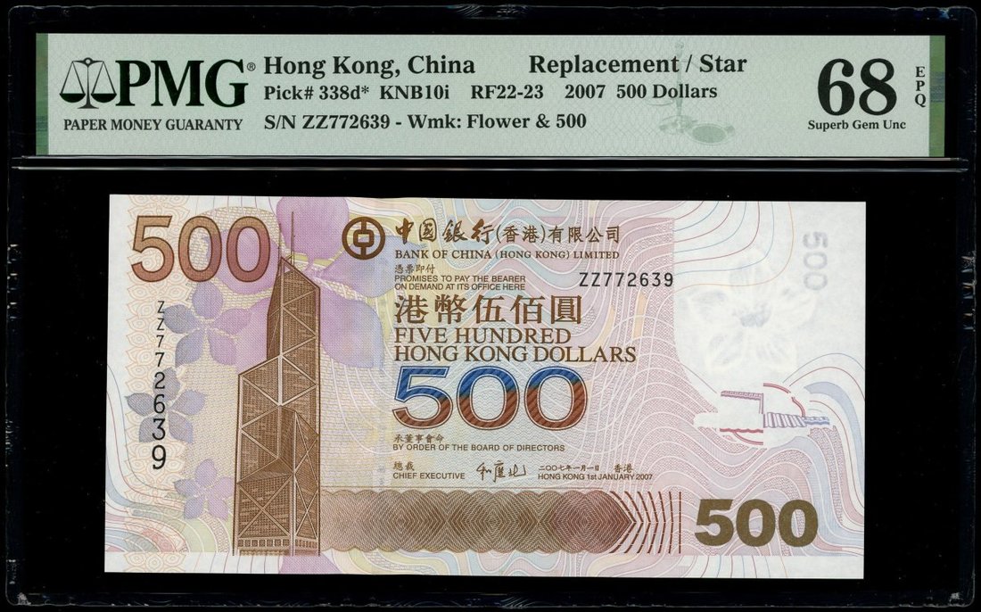 Bank of China, $500, 1.1.2007, replacement serial number ZZ772639, (Pick 338d*), PMG 68EPQ Superb Gem Uncirculated