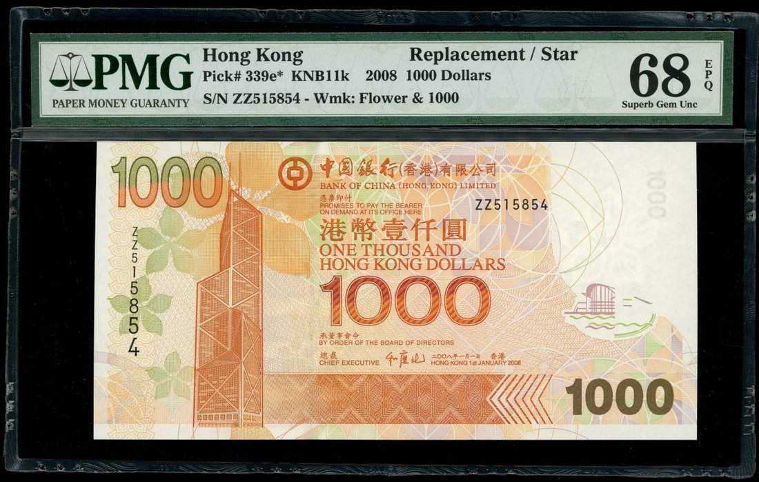 Bank of China, $1000, 1.1.2008, replacement serial number ZZ515854, (Pick 339e*), PMG 68EPQ Superb Gem Uncirculated