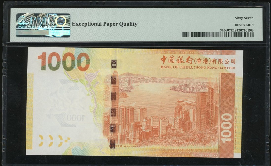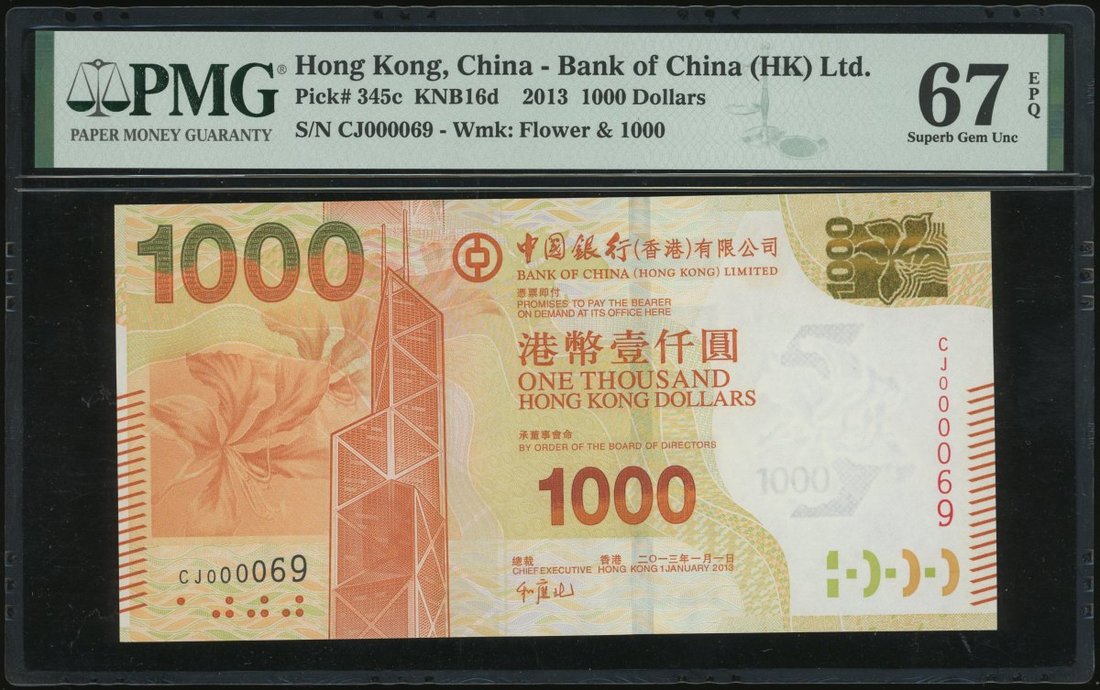Bank of China, $1000, 1.1.2013, low serial number CJ000069, (Pick 345c), PMG 67EPQ Superb Gem Uncirculated