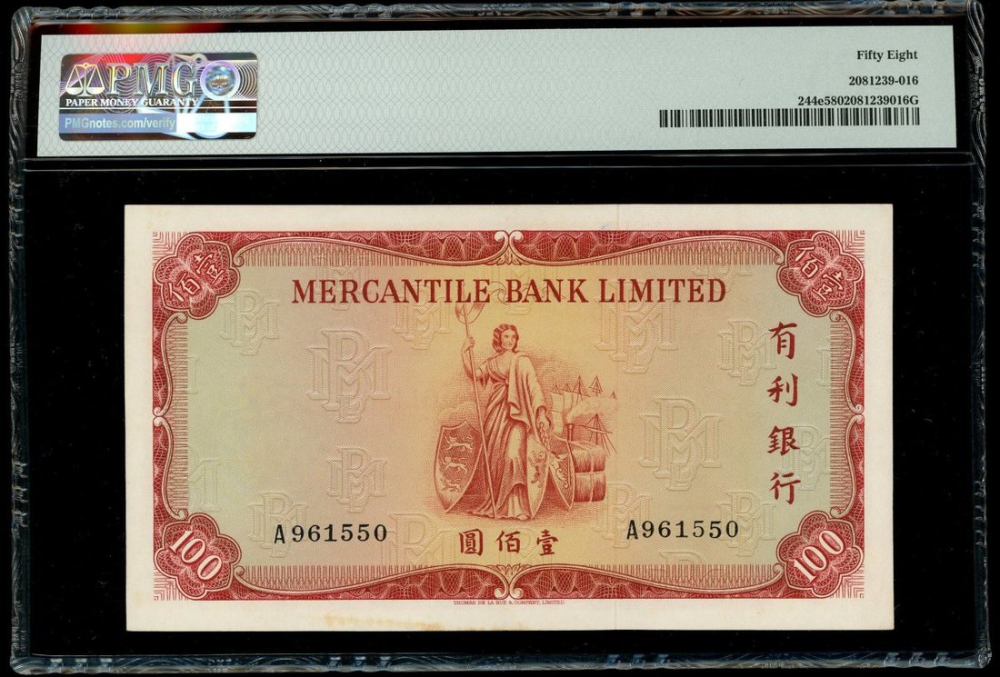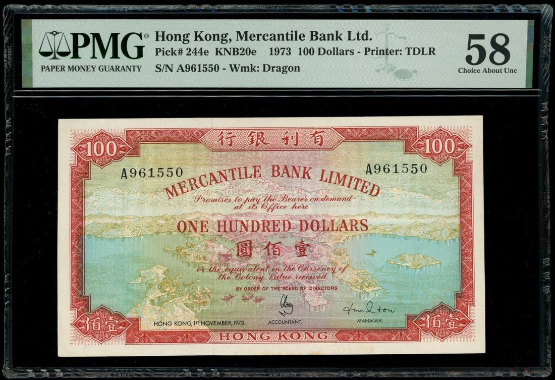 1973年有利銀行100元,編號A961550,PMG 58,大熱版別