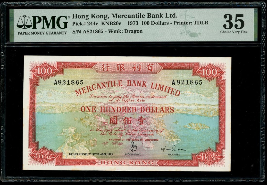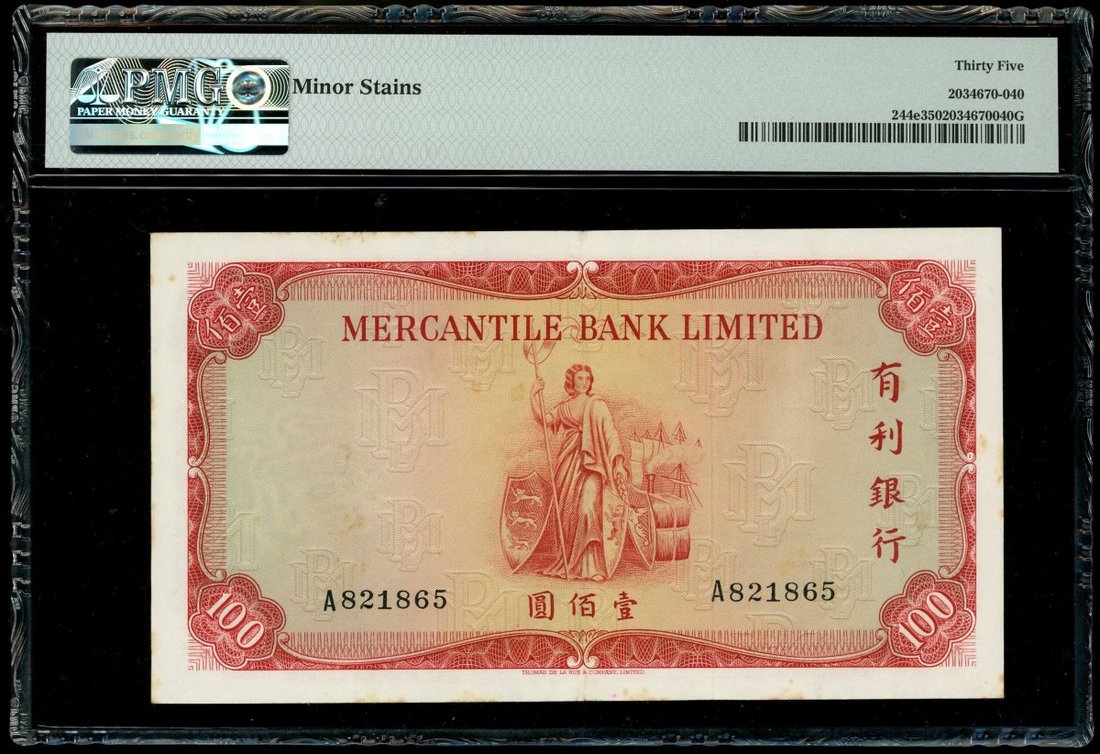 Mercantile Bank Limited, $100, 1.11.1973, serial number A821865, (Pick 244e), PMG 35 Choice Very Fine (Minor Stains)