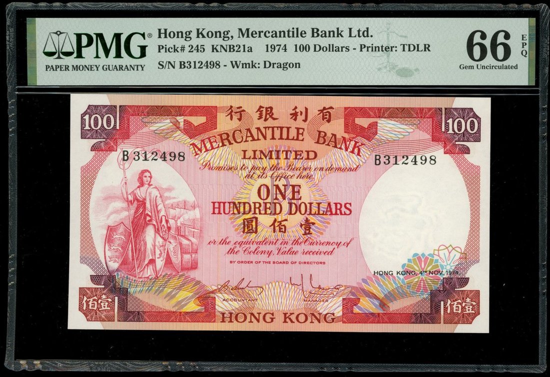 Mercantile Bank Limited, $100, 4.11.1974, serial number B312498, (Pick 245), PMG 66EPQ Gem Uncirculated