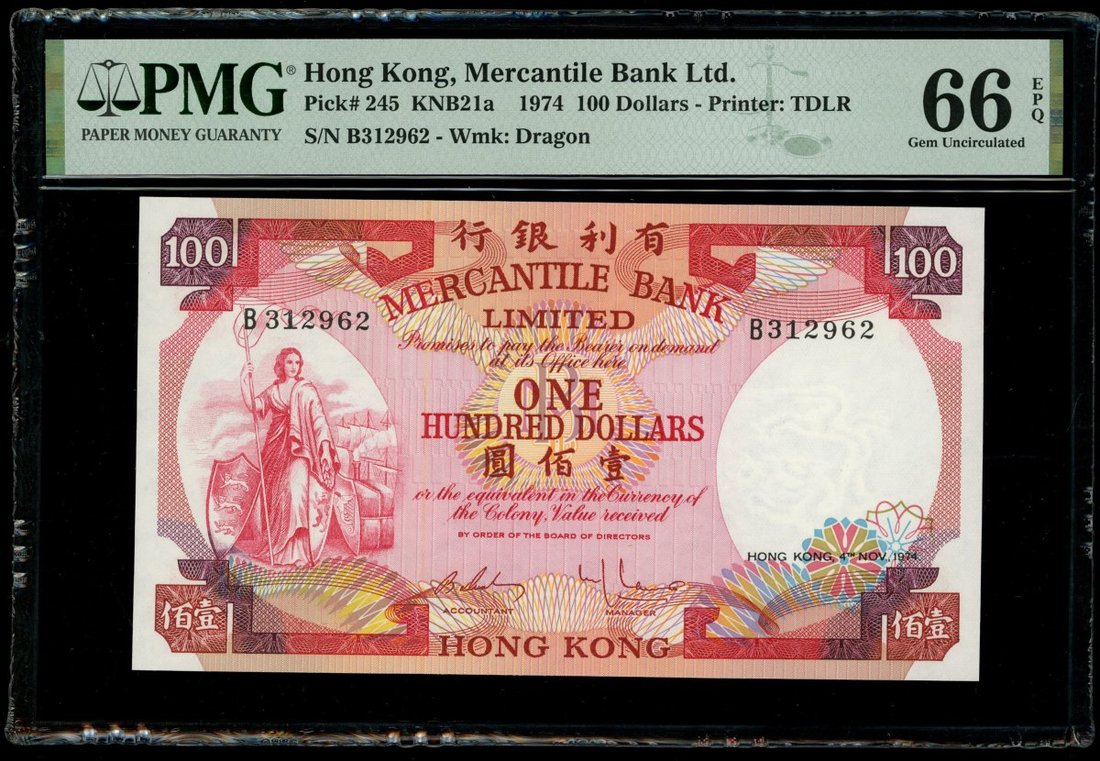 Mercantile Bank Limited, $100, 4.11.1974, serial number B312962, (Pick 245), PMG 66EPQ Gem Uncirculated