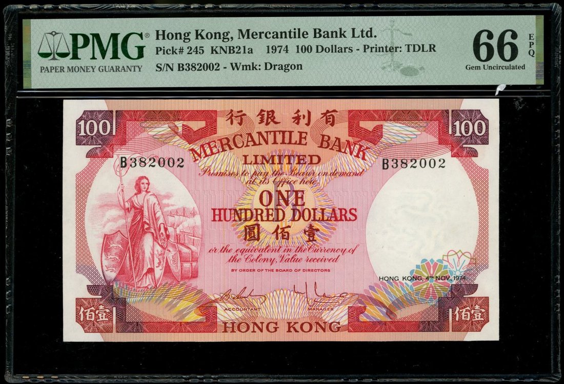 Mercantile Bank Limited, $100, 4.11.1974, serial number B382002, (Pick 245), PMG 66EPQ Gem Uncirculated.