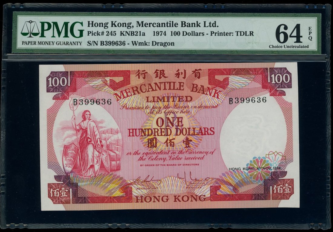 1974年有利銀行100元,編號B399636,PMG 64EPQ