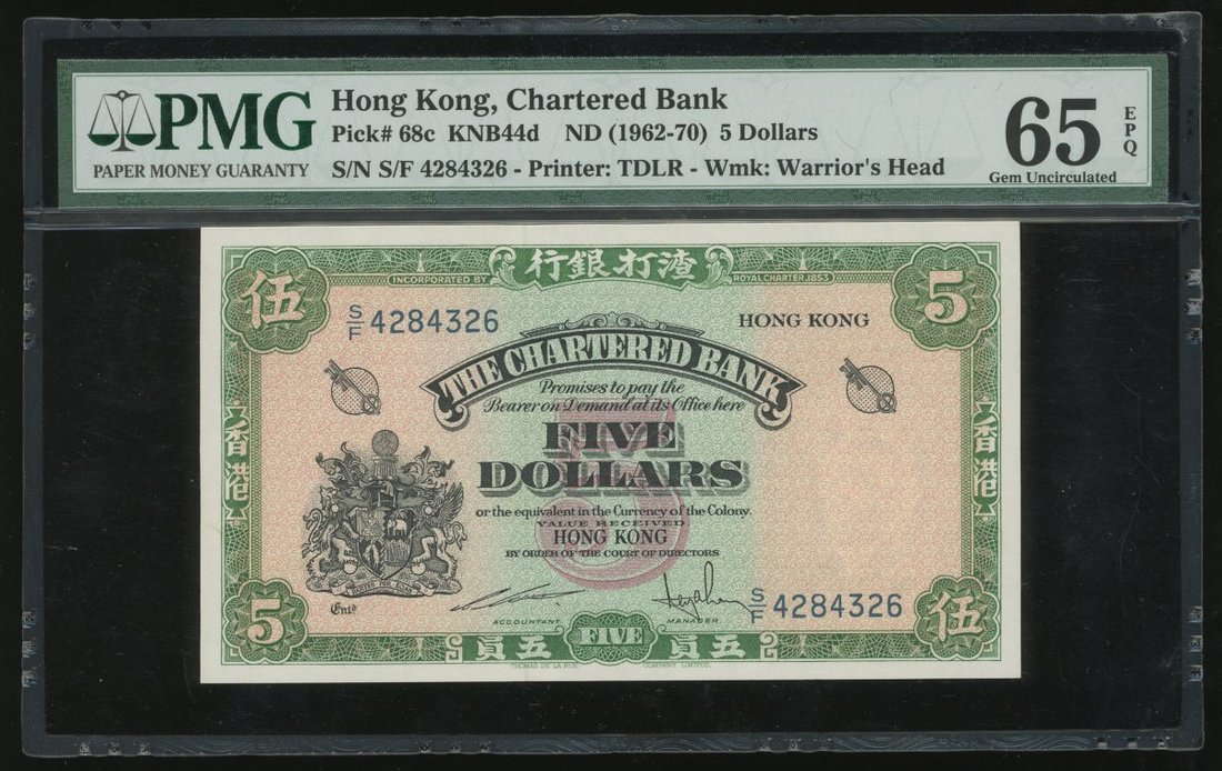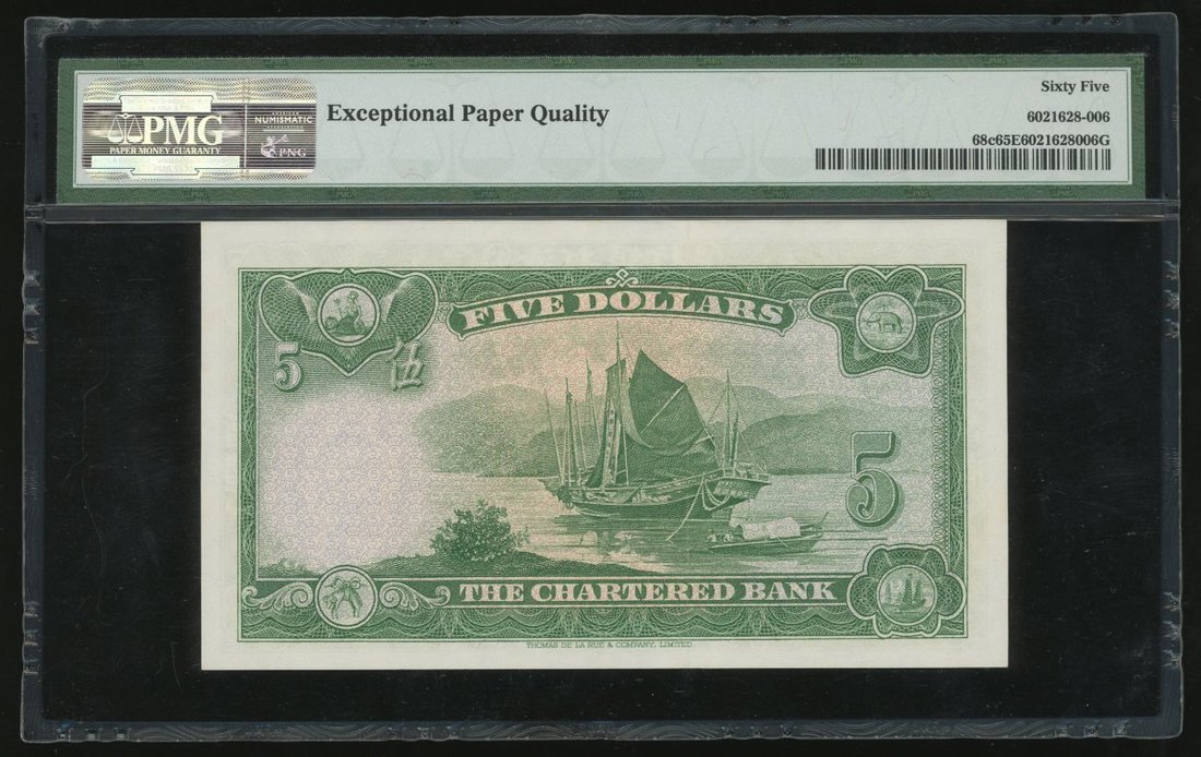 The Chartered Bank, $5, ND(1962-70), serial number S/F4284326, (Pick 68c), PMG 65EPQ.