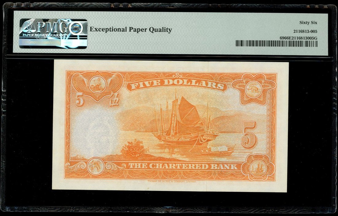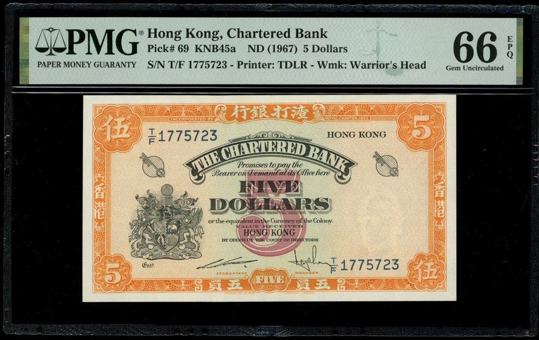 1967年渣打銀行5元,無日期,編號T/F 1775723,PMG 66EPQ