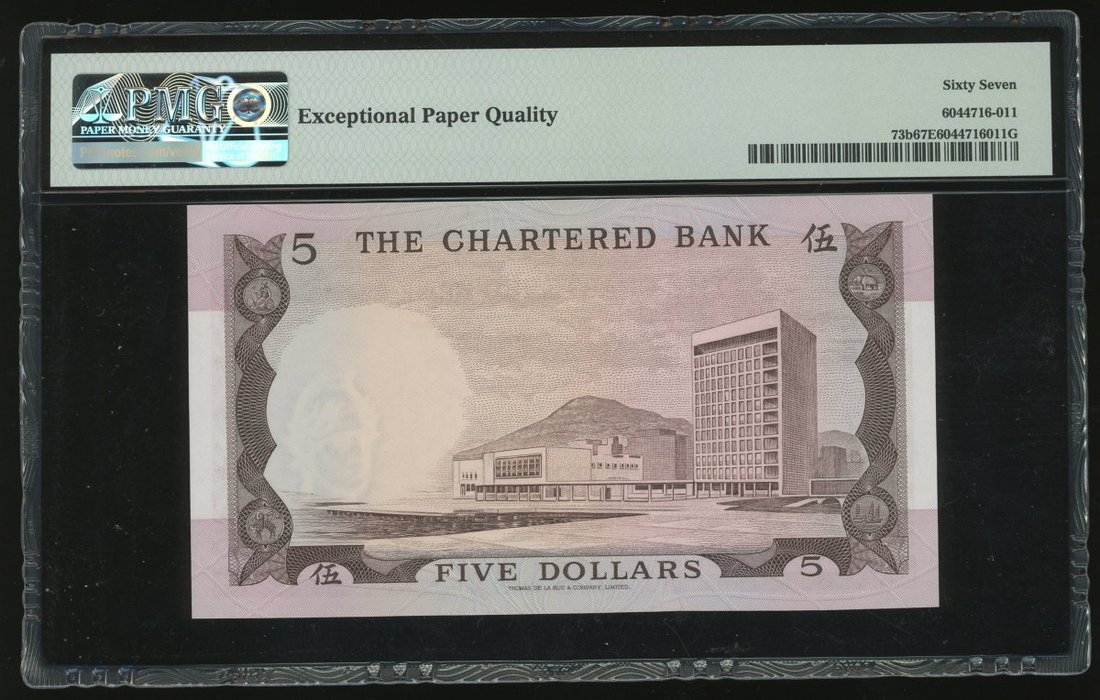1975年渣打銀行5元,無日期,編號M555856,PMG 67EPQ