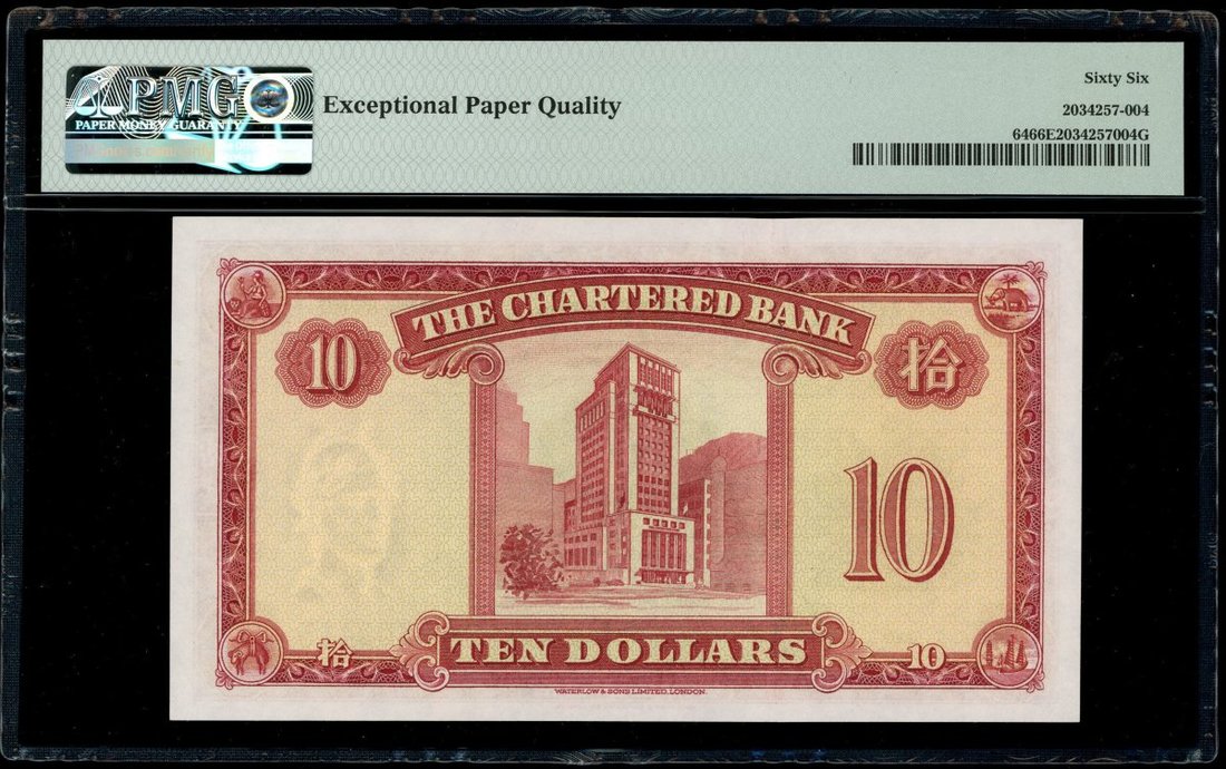 1959年渣打銀行10元,編號T/G 6309413,PMG 66EPQ,罕見首發年份,大熱版別