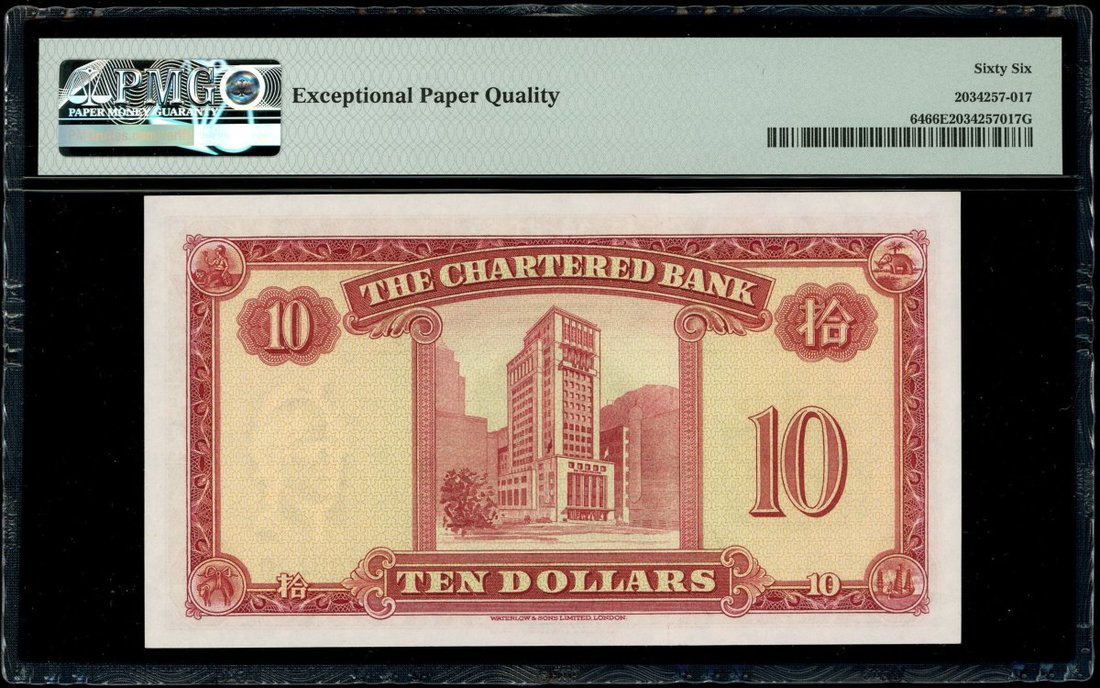 1959年渣打銀行10元,編號T/G 6309429,PMG 66EPQ,罕見首發年份,大熱版別