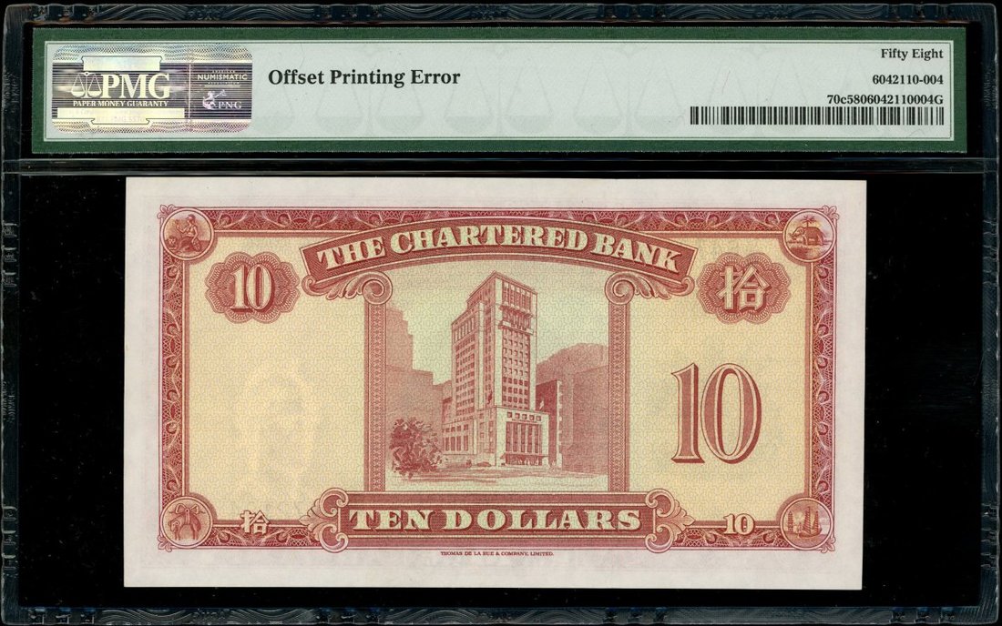 The Chartered Bank, $10, ND(1962-70), serial number U/G6472194, offset printing error,