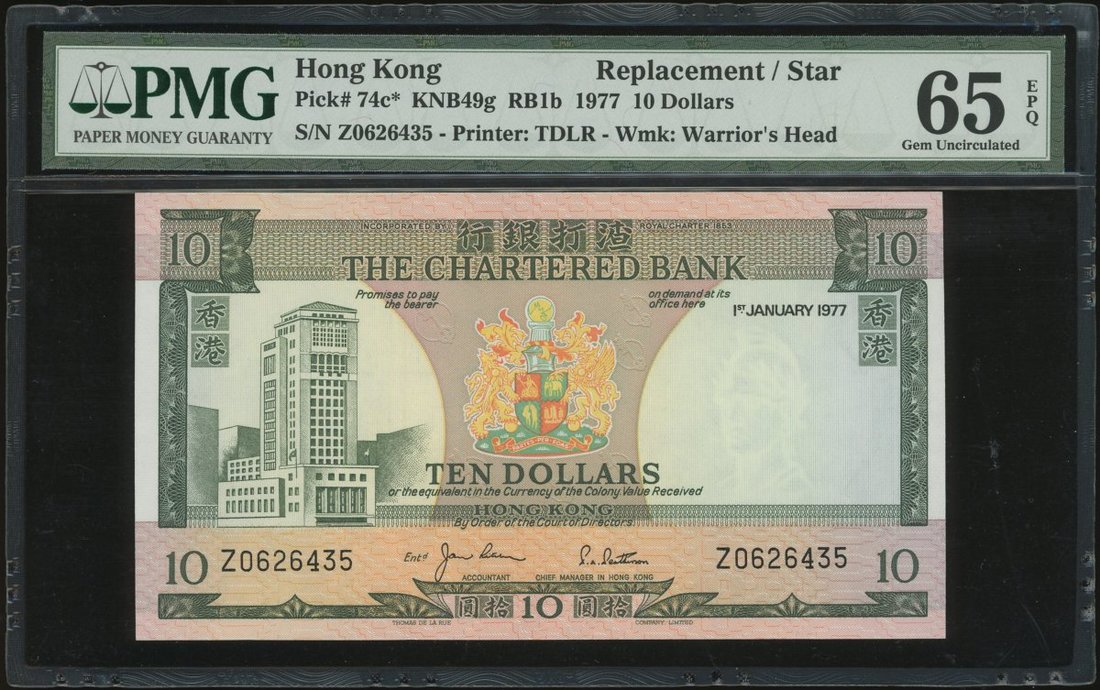 1977年渣打銀行10元,補版編號Z0626435,PMG 65EPQ
