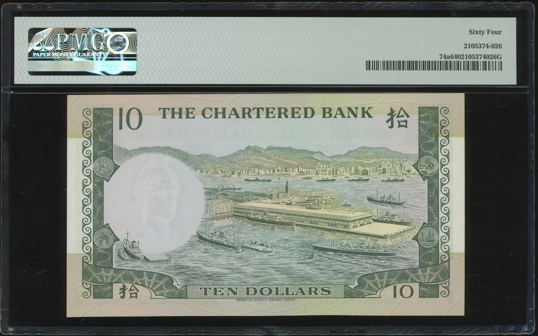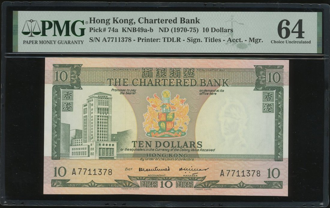 The Chartered Bank, $10, ND (1970-1975), serial number A7711378, (Pick 74a), PMG 64 Choice Uncirculated