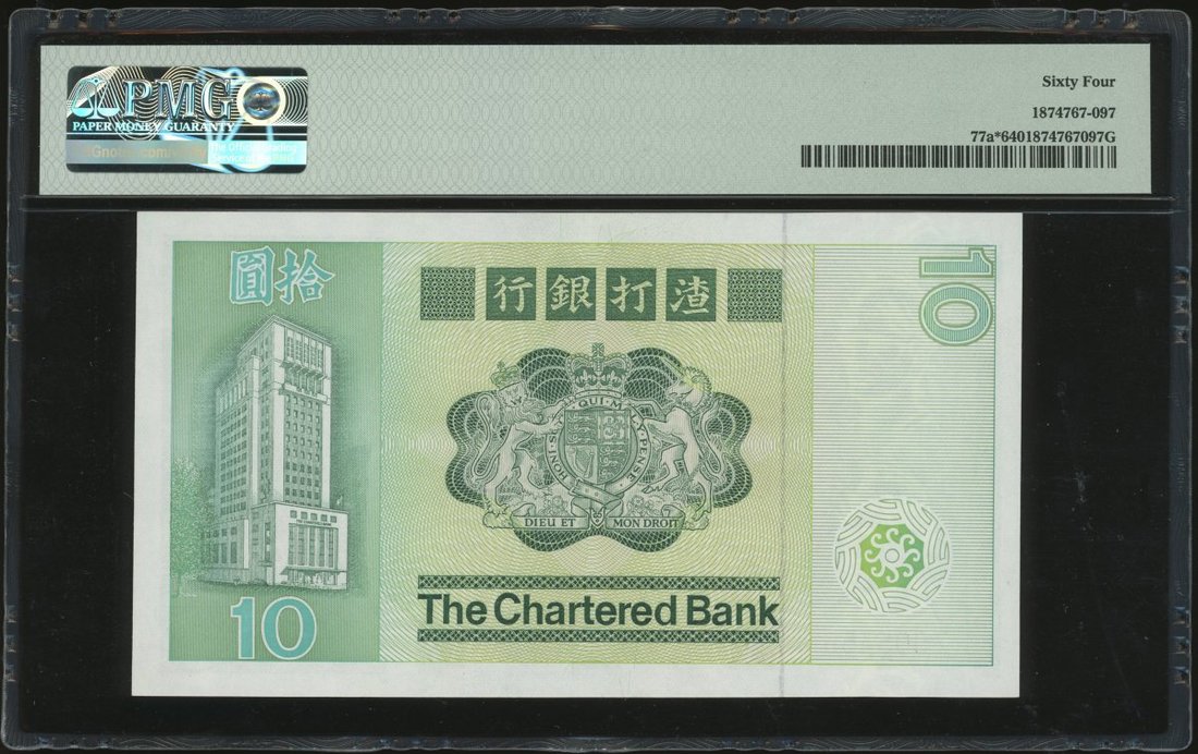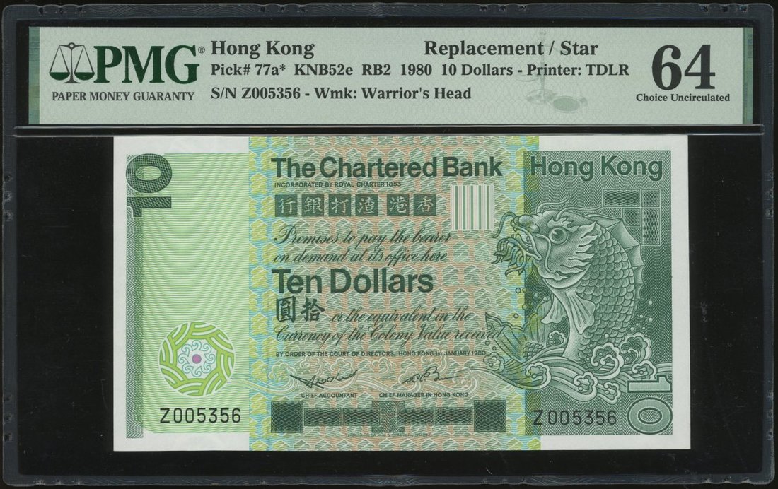 1980年渣打銀行10元,補版編號Z005356,PMG 64