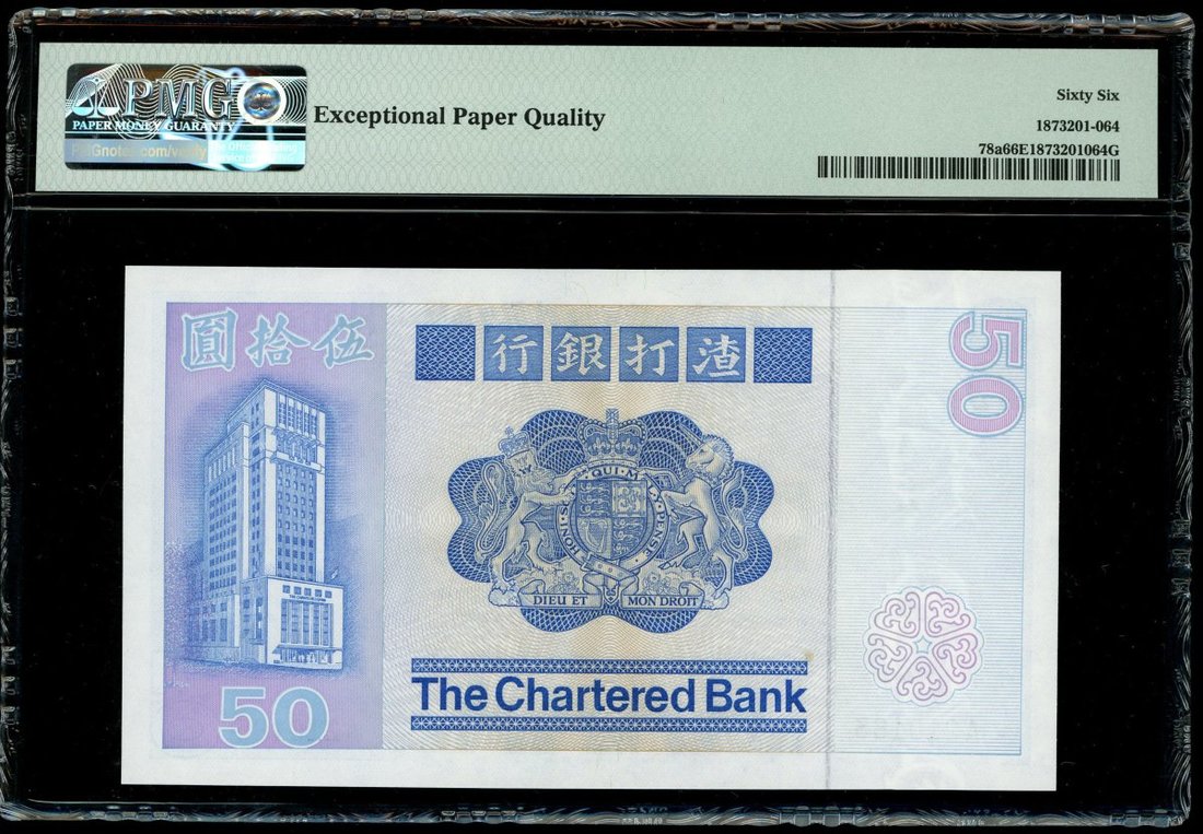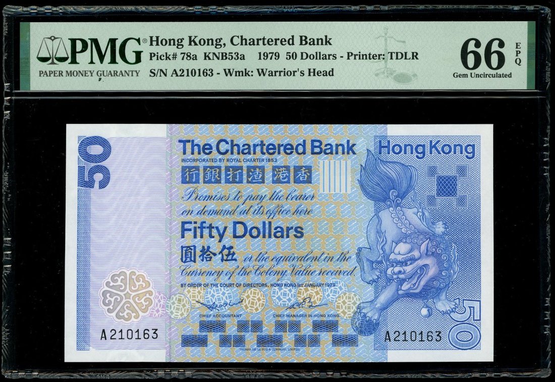 1979年渣打銀行50元,首字軌編號A210163,PMG 66EPQ