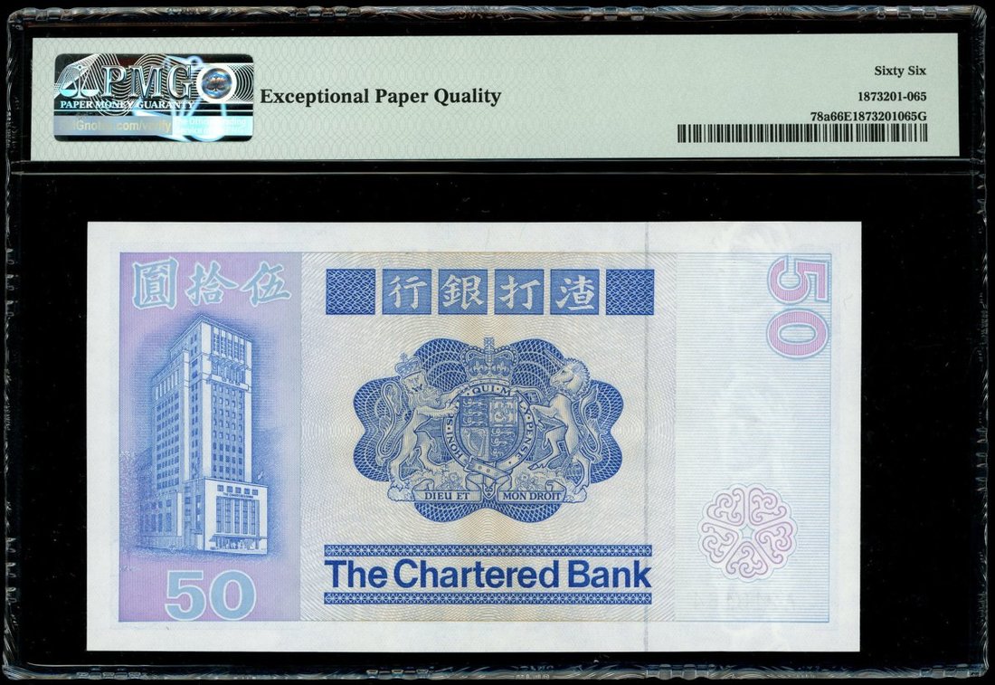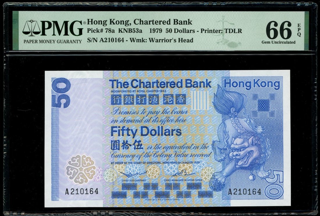 1979年渣打銀行50元,首字軌編號A210164,PMG 66EPQ