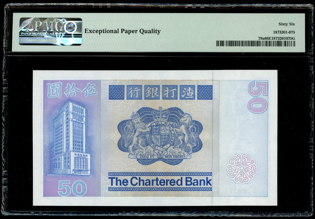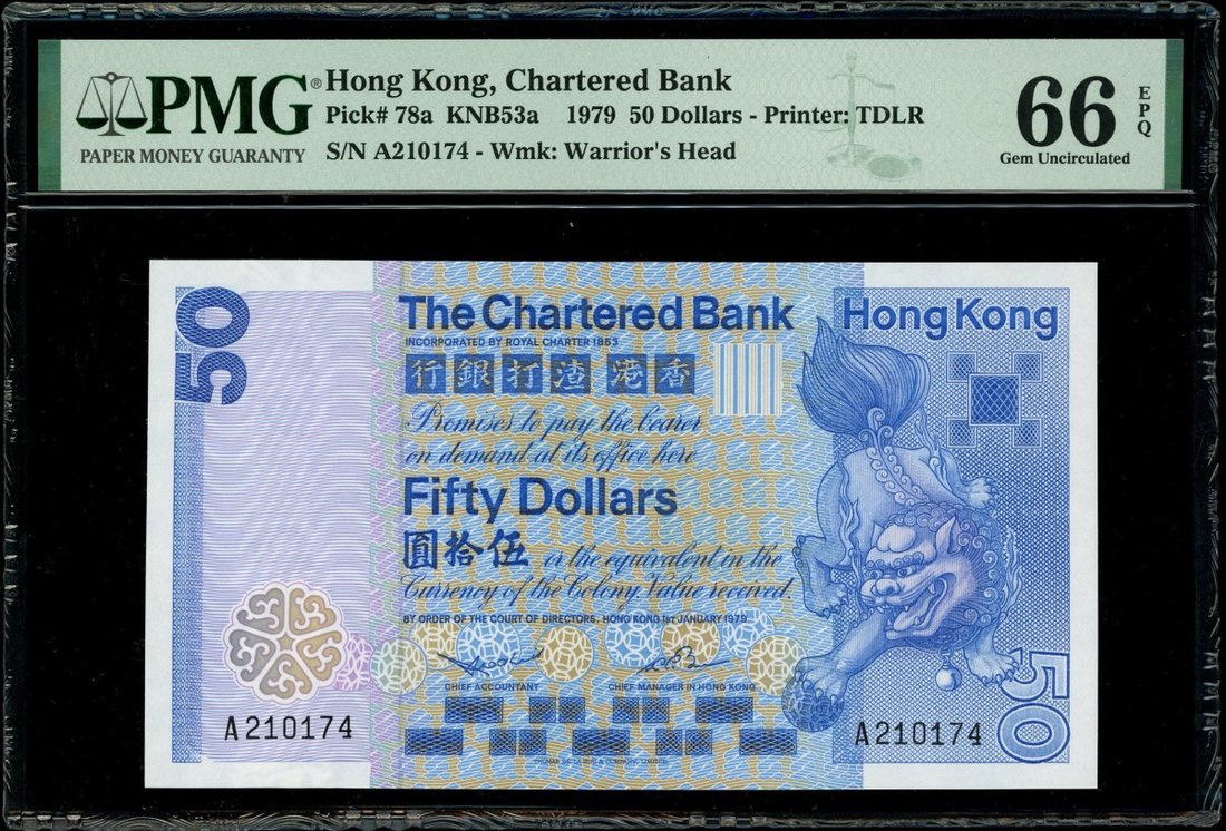 1979年渣打銀行50元,首字軌編號A210174,PMG 66EPQ