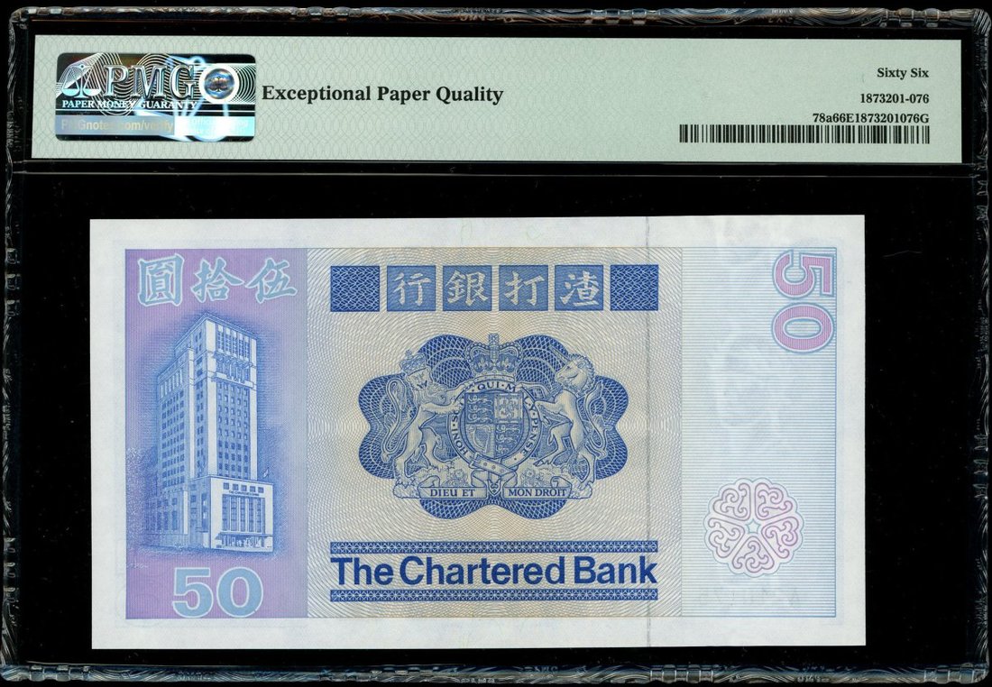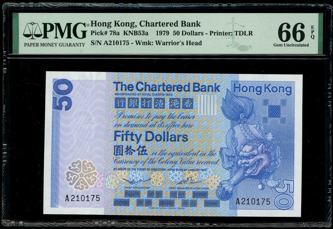 1979年渣打銀行50元,首字軌編號A210175,PMG 66EPQ