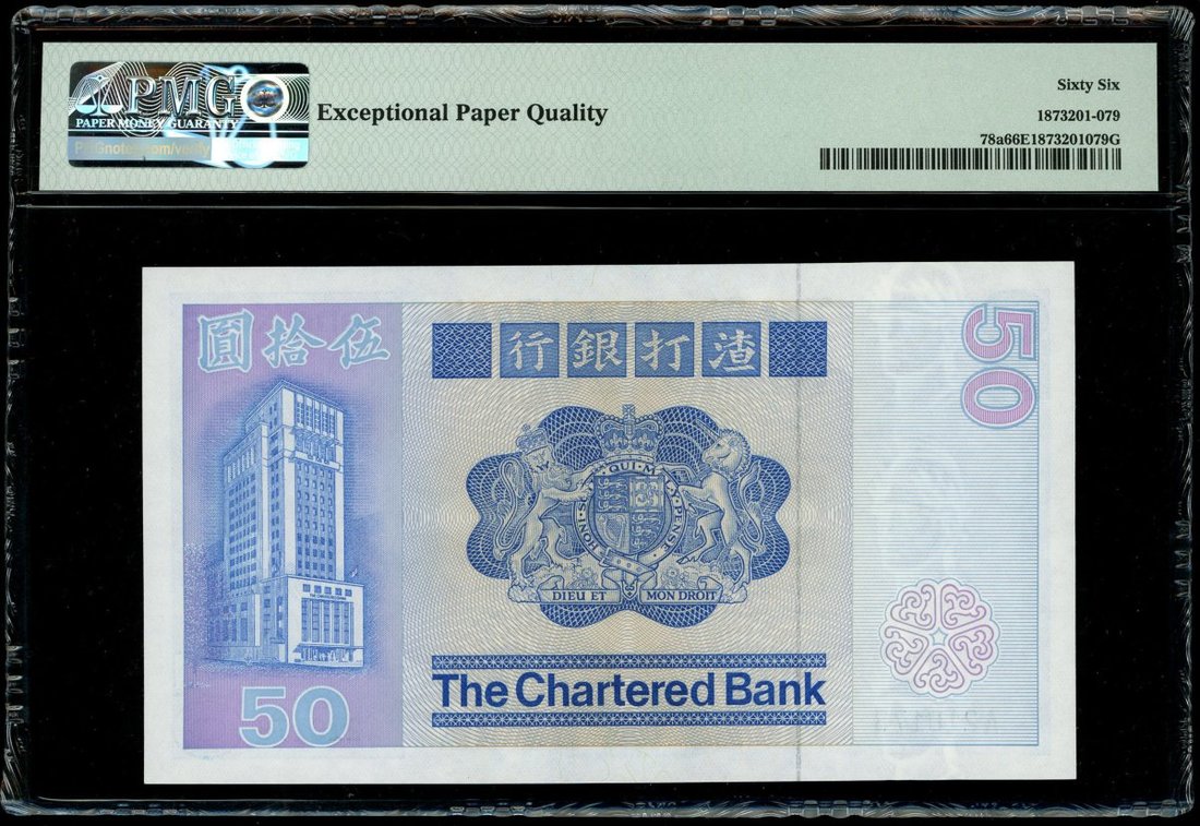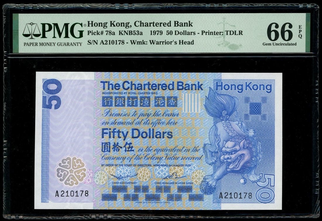 1979年渣打銀行50元,首字軌編號A210178,PMG 66EPQ