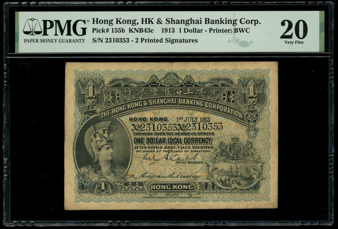 The Hongkong and Shanghai Banking Corporation, $1, 1.7.1913, serial number 2310353, two printed signatures,