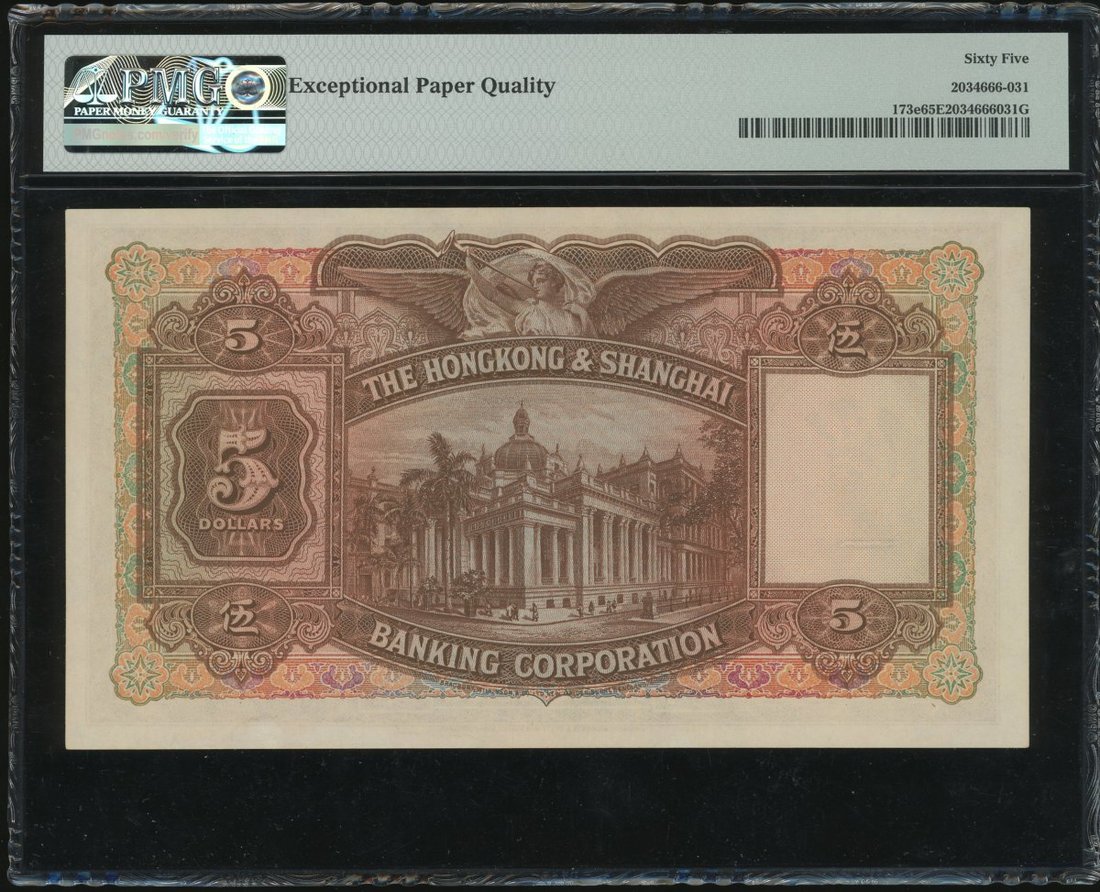 The Hongkong and Shanghai Banking Corporation, $5, 30.3.1946, serial number T124111, (Pick 173e), PMG 65EPQ Gem Uncirculated.