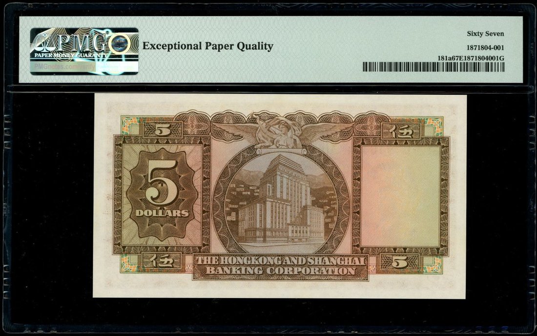 1960年香港上海匯豐銀行5元,編號946401 AU,PMG 67EPQ