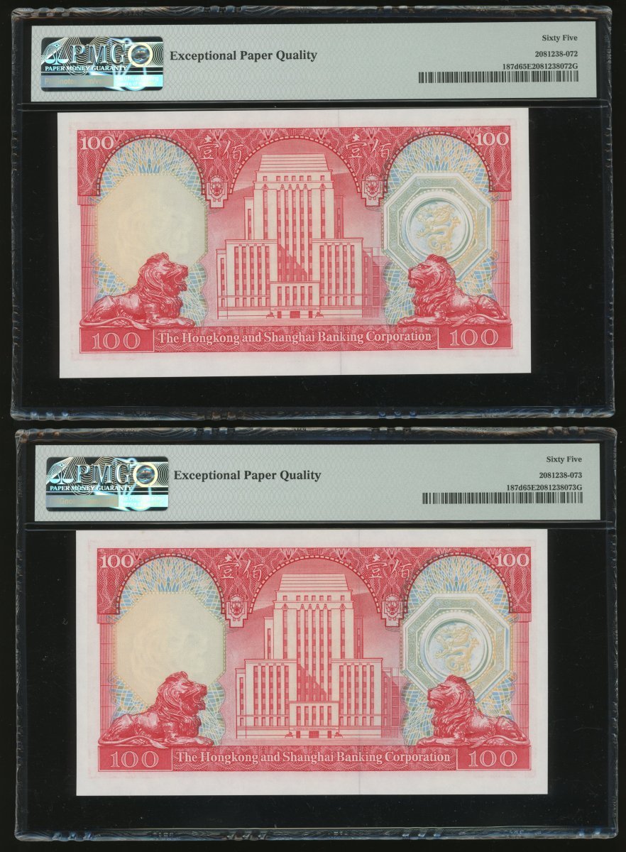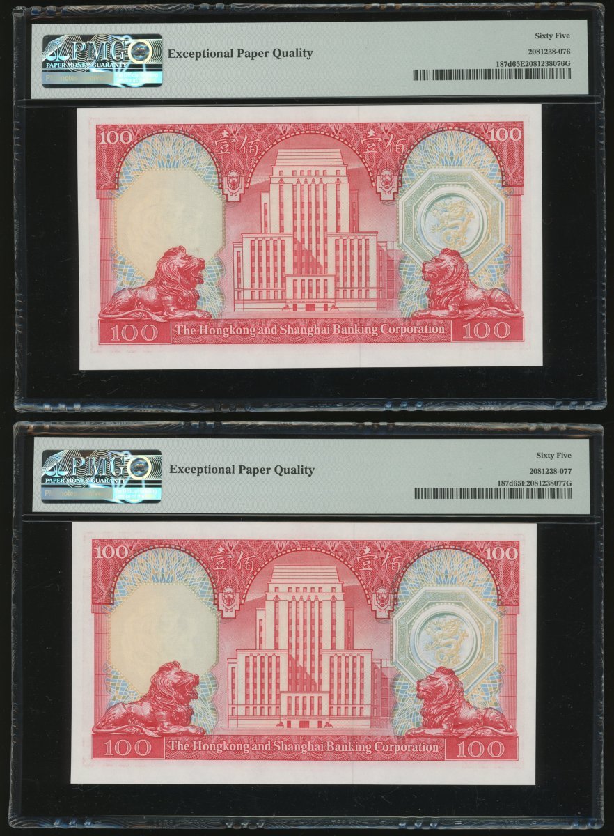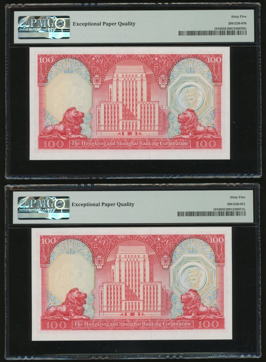 1983年香港上海匯豐銀行100元連號10枚,編號YA344351-360,均PMG 65EPQ