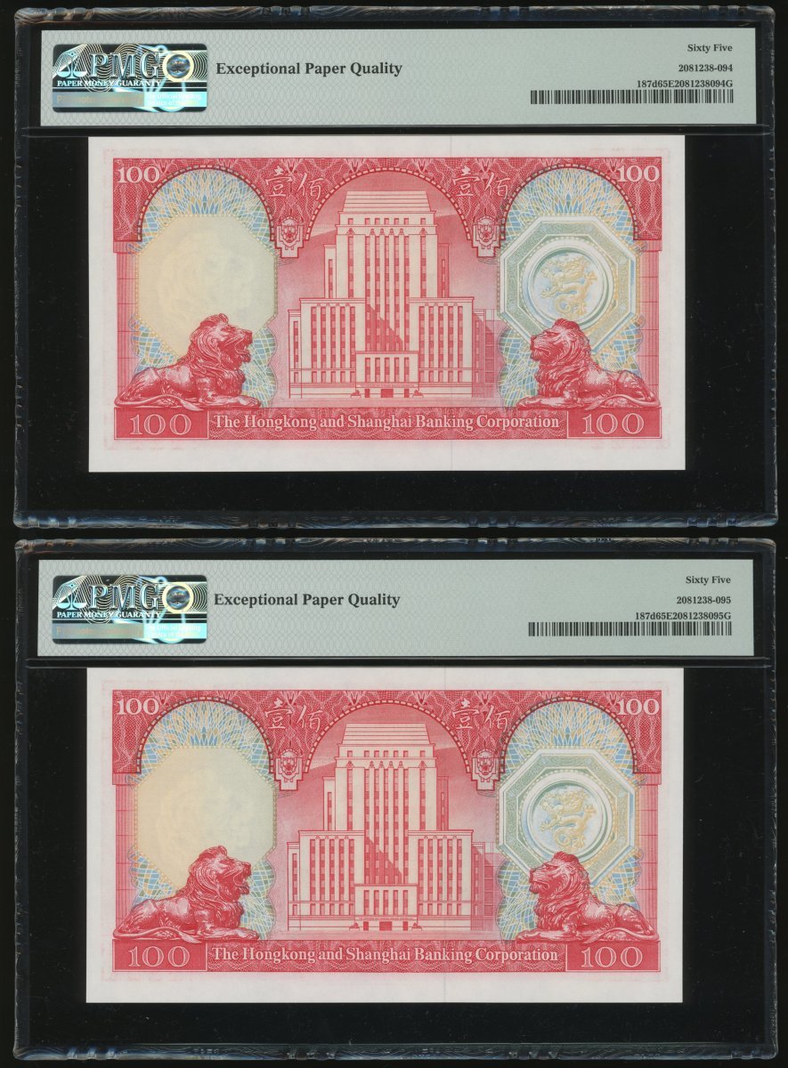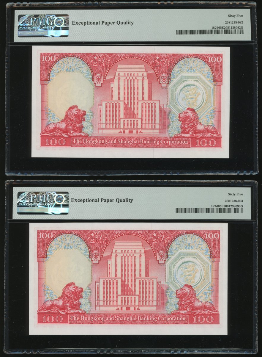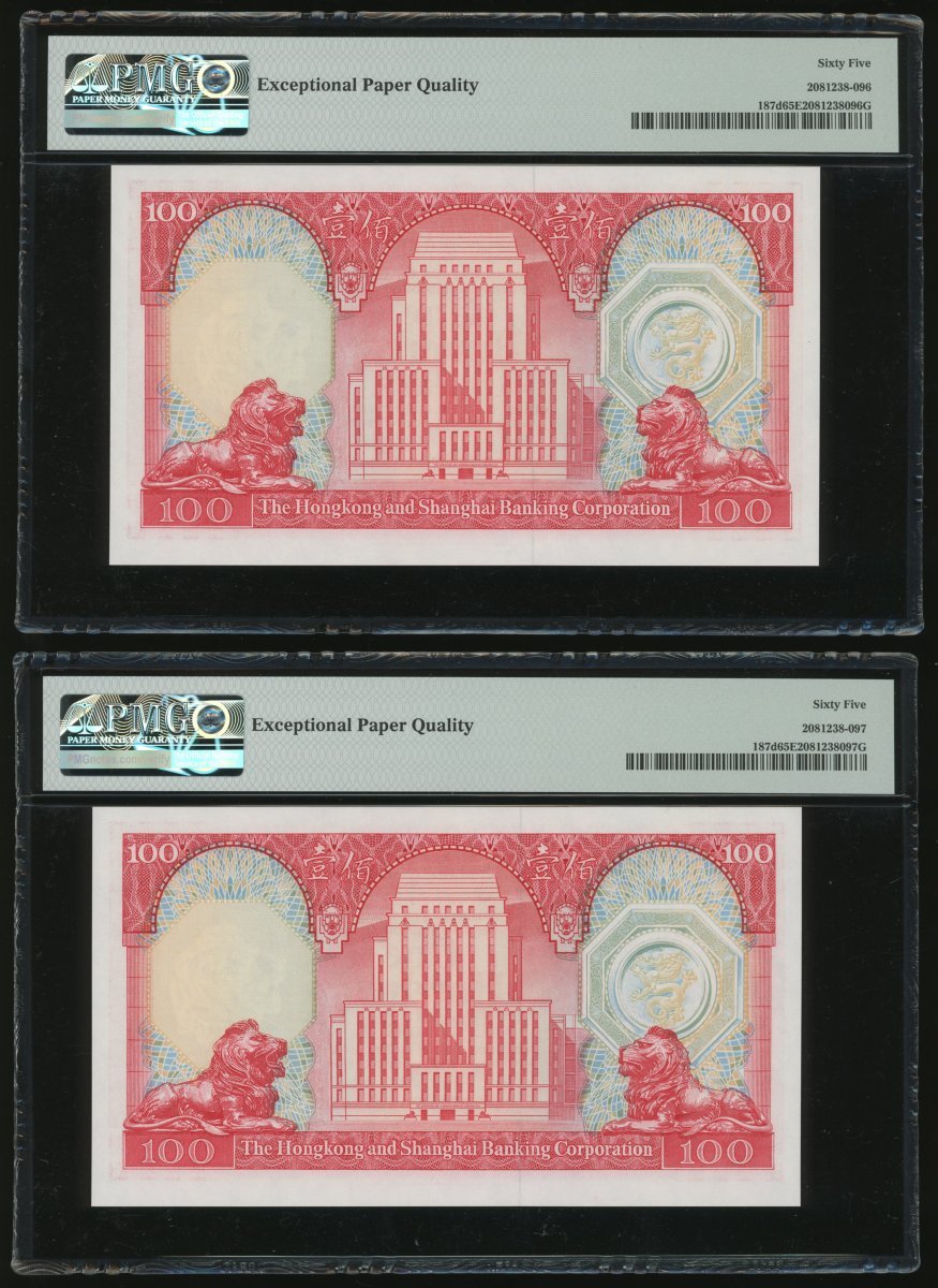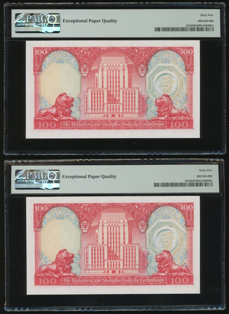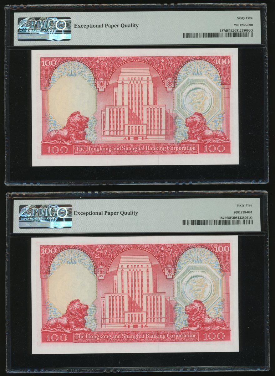 The Hongkong and Shanghai Banking Corporation, a consecutive run of 10x $100, 31.3.1983, serial numbers YA344371-344380, (Pick 187d), all graded PMG 65EPQ Gem Uncirculated (10).
