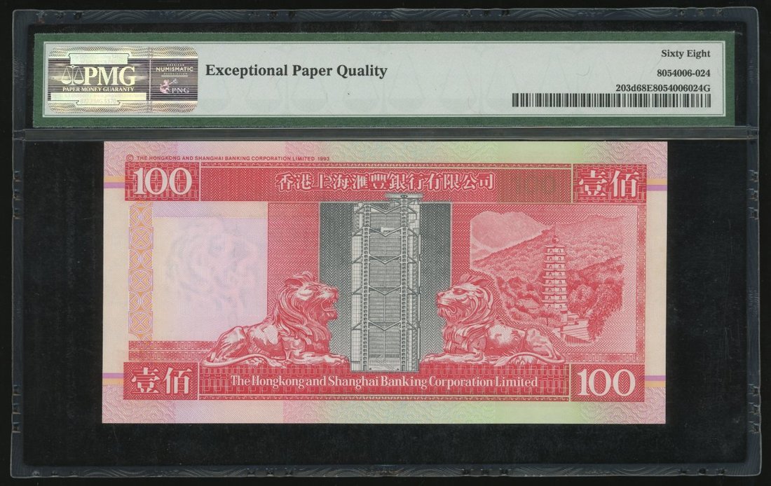 2002年香港上海匯豐銀行100元,編號LS100000,PMG 68EPQ