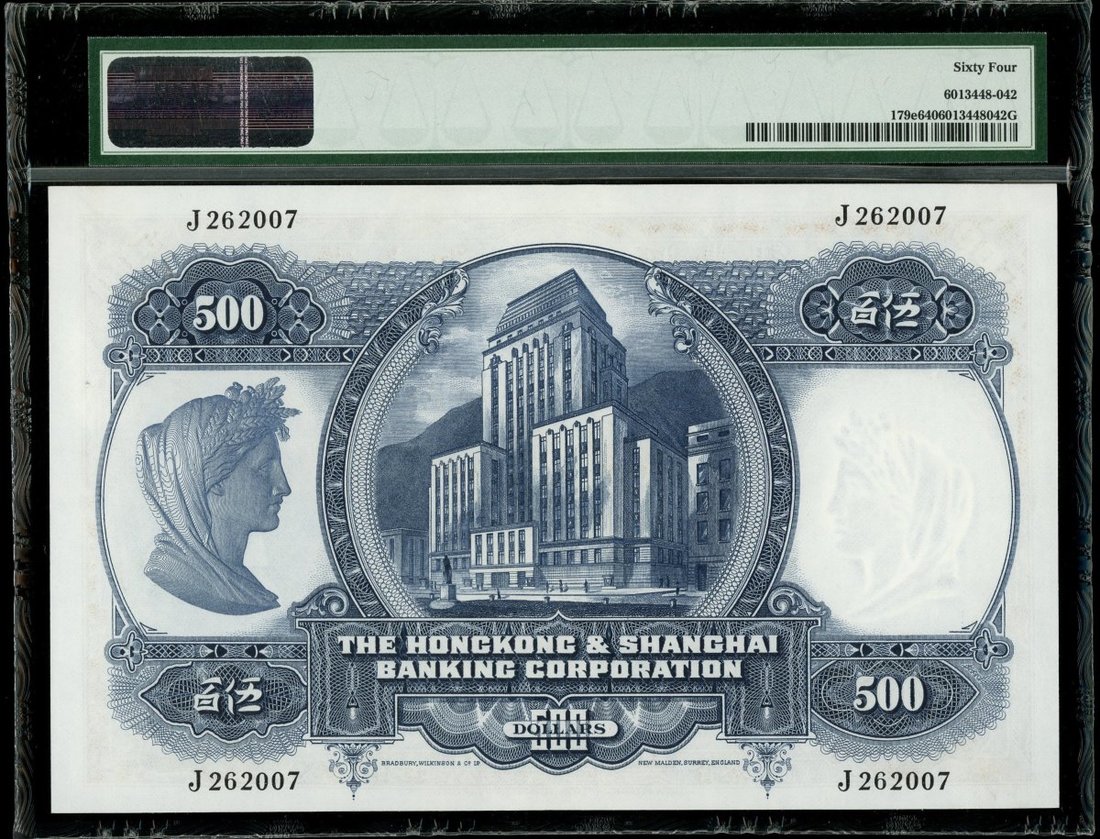1968年香港上海匯豐銀行500元,編號J262007,PMG 64