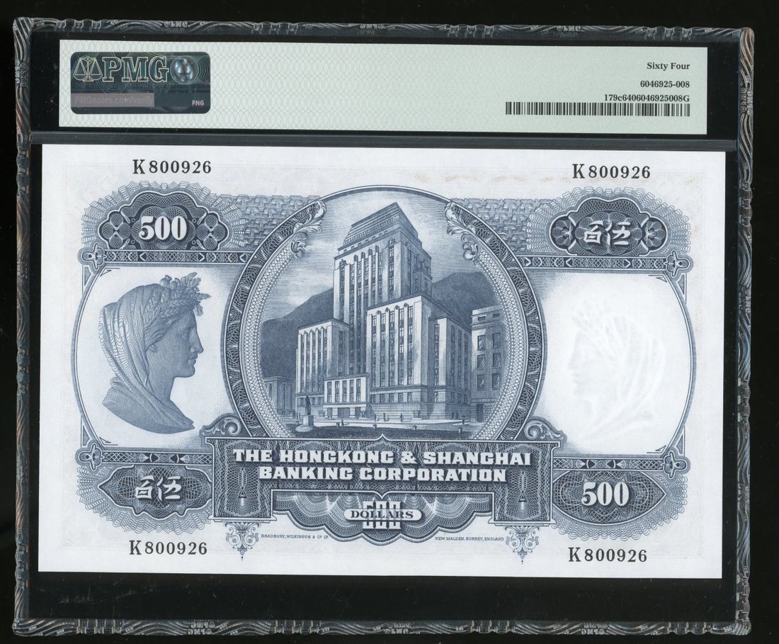 1968年香港上海匯豐銀行500元,編號K800926,PMG 64