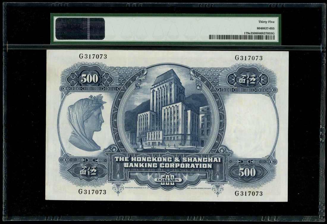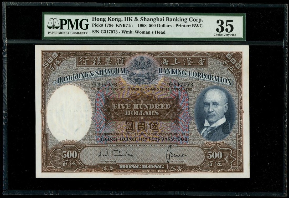 1968年香港上海匯豐銀行500元,編號G317073,PMG 35
