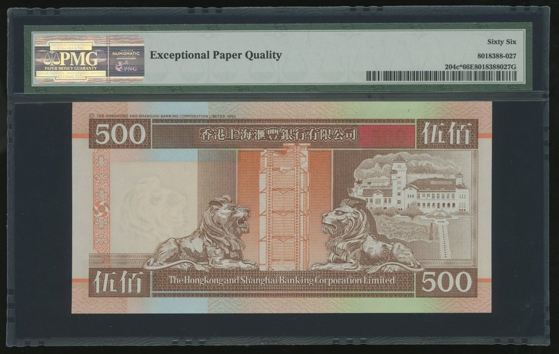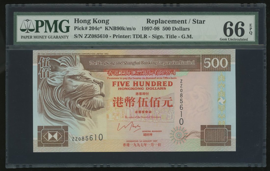 The Hongkong and Shanghai Banking Corporation, $500, 1.1.1997, replacement numbers ZZ085610, (Pick 204c*), PMG 66EPQ Gem Uncirculated and scarce