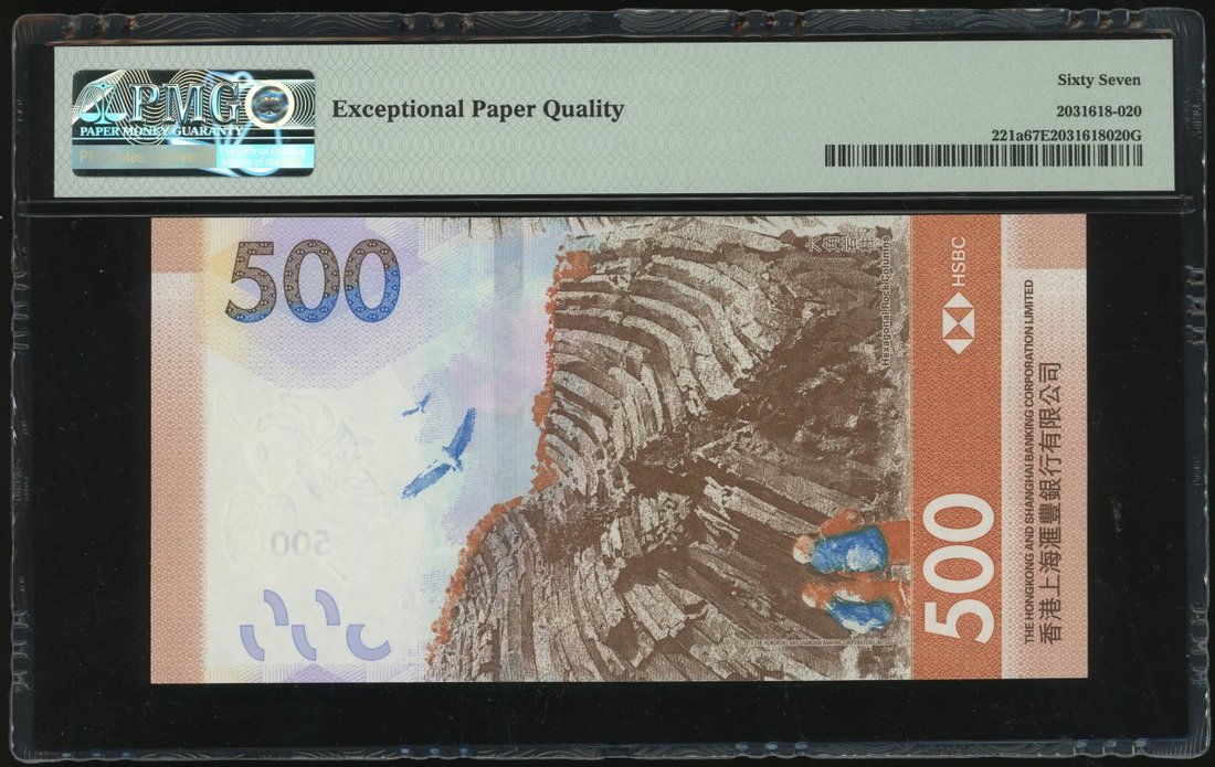 The Hongkong and Shanghai Banking Corporation, $500, 1.1.2018, fancy serial number EG358888, (Pick 221a), PMG 67EPQ Superb Gem Uncirculated.