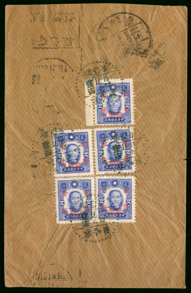 1946 (4 Dec.) envelope to Tientsin bearing $20 on 2c. (5) tied Sinpoan c.d.s., Tientsin (9.12) arrival c.d.s.