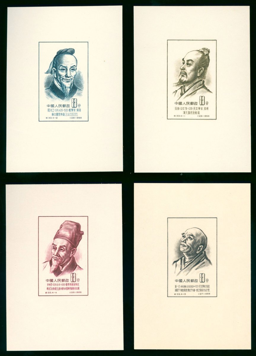1955 Scientist of Ancent China. (1st series) (C33m) , complete set of four miniature sheet, without gum as issued, unused and very fine. Yang C125m-128m