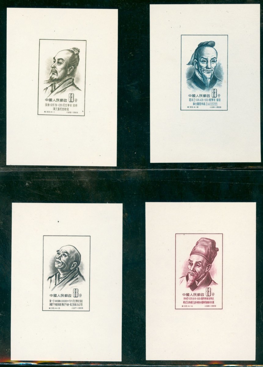 1956 (1 Jan.) Scientists of Ancient China (1st series) (C33M) 8f. miniature sheet in set of four, very fine. Yang C33Ma-C33Md