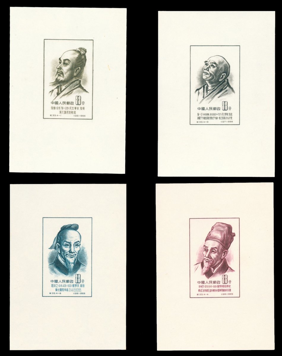 1956 (1 Jan.) Scientists of Ancient China (1st series) (C33M) 8f. miniature sheet in set of four, very fine. Yang C33Ma-C33Md