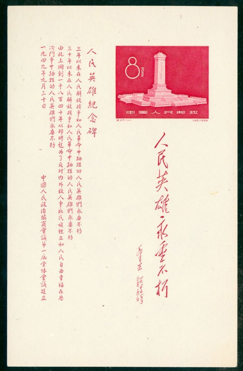 1958 (1 May) Monument of People's Heroes (C47M) 8f. miniature sheet, very fine, unmounted mint. Yang C47M