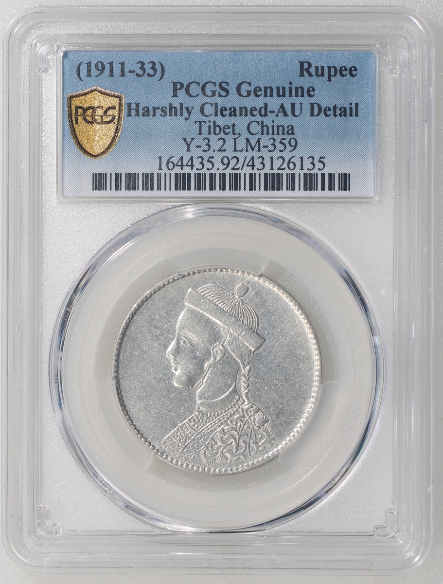 1911-1933年西藏四川盧比銀幣,PCGS AU Detail有嚴重清洗,#43126135
