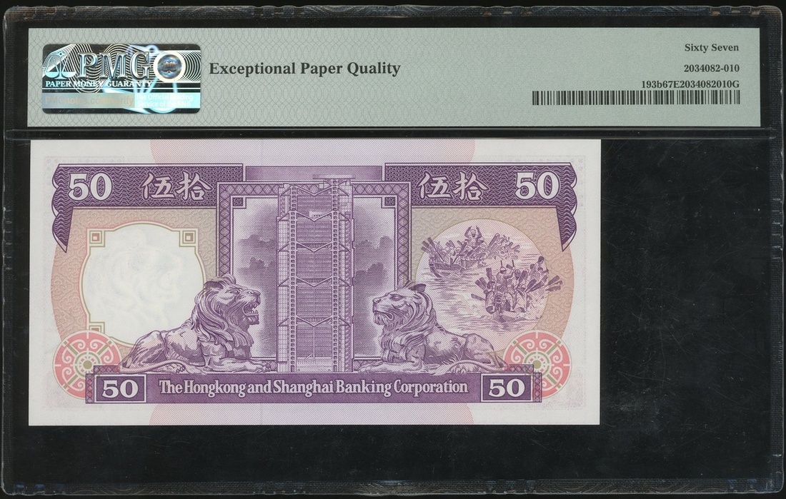 1988年香港上海匯豐銀行50元,幸運號AW777777,PMG 67EPQ,記錄中的亞軍分,僅八枚更高分,集趣味好與高評於一身