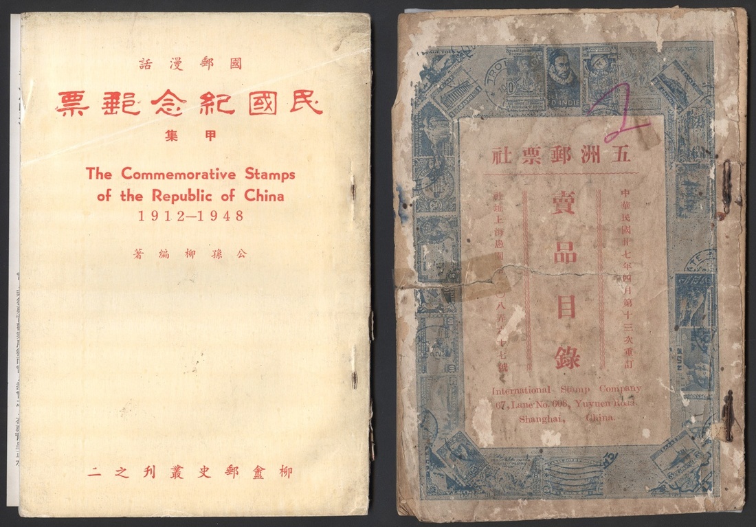 1938-48年集郵文獻2冊,包括38年《五洲郵票社賣品目錄》,48年公孫柳著《民國紀念郵票甲集》,整體保存完好