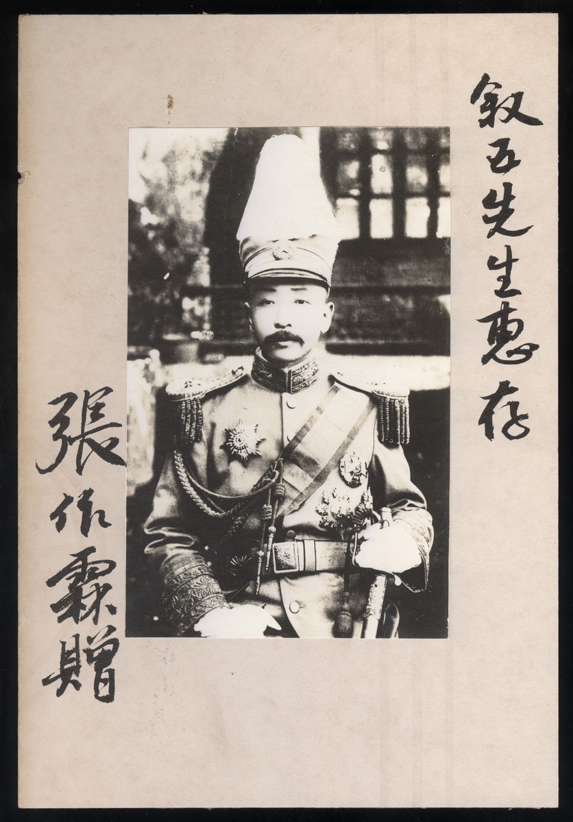 1920-30年代張作霖送贈友人軍裝照片,有張作霖簽名. 照片裱於厚紙上. 照片尺寸:m 13x8.4cm